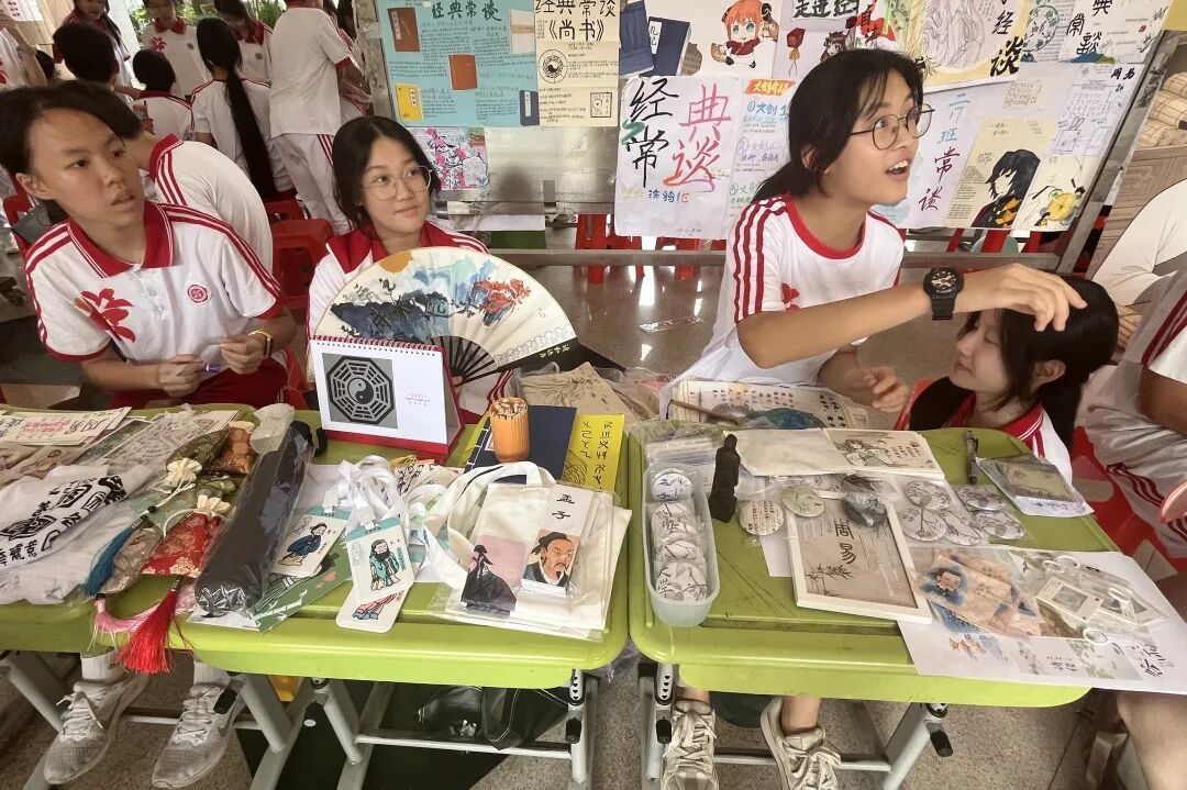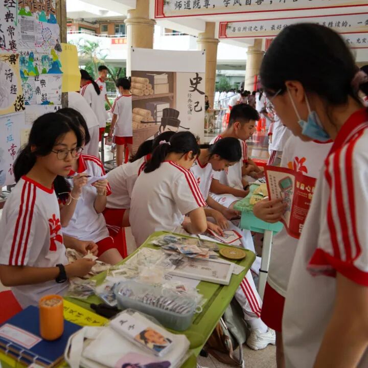 从古籍中汲取灵感,在创意中赋予新生。这场充满烟火气的文创集市,不仅是广州中学 “书香校园” 建设的生动实践,更是一次传统文化传承的创新探索。此次活动,通过同学们的自主设计、制作与推广,打造了一系列兼具文化内涵和趣味性的文创产品,让经典“活”起来,走进日常生活。当同学们用双手创造经典,用热情讲述经典,文化的脉络便在青春的血脉中悄然延续,在未来得以绽放出新的光彩。