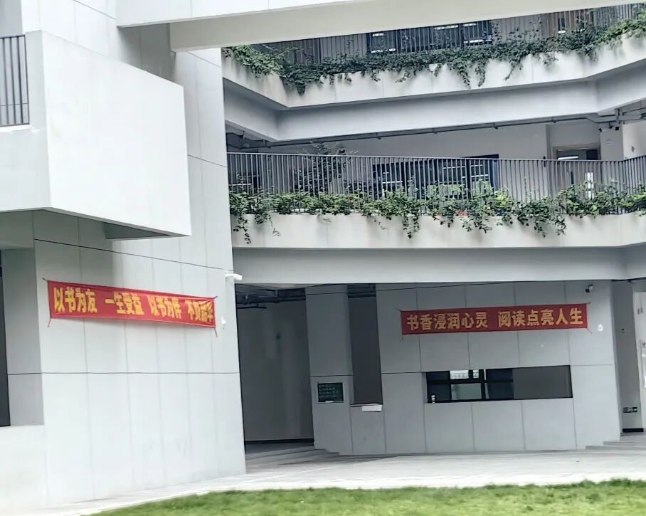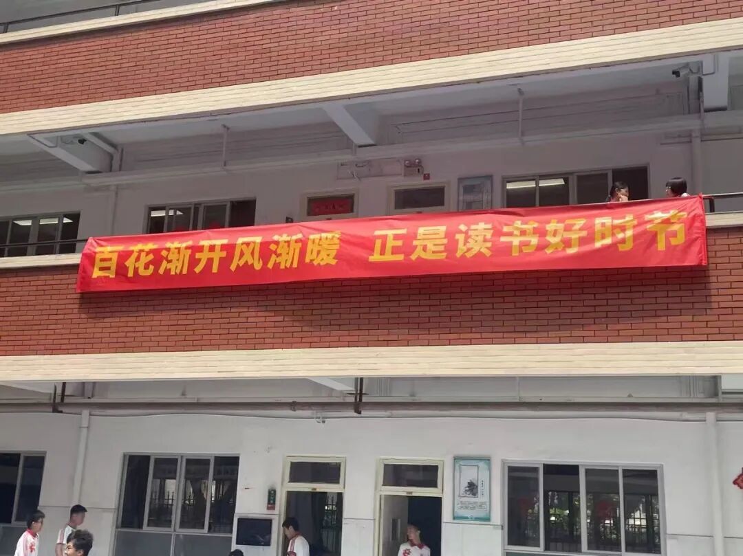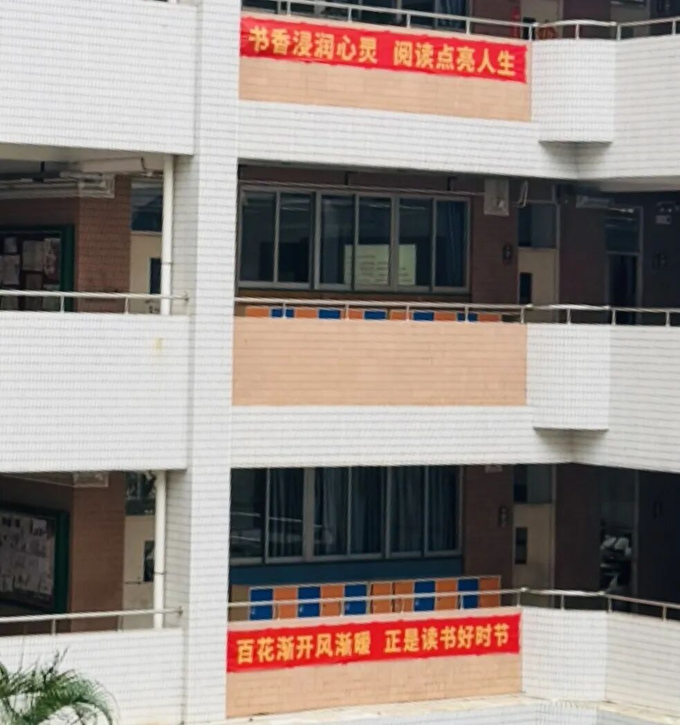 为营造浓厚的读书氛围,初中部三个校区均在教学楼悬挂了精心设计的读书主题条幅,让书香气息弥漫校园每个角落。