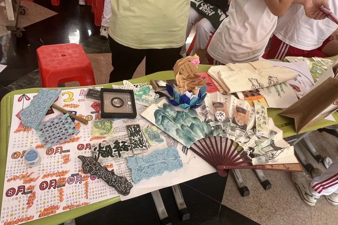 摊位前,参观者们或认真聆听创作者讲解作品背后的文化故事,或兴致勃勃地参与 “漆扇制作” 等体验活动。欢笑声中,《经典常谈》里的知识不再是课本上的文字,而是变成了可触摸、可交流的鲜活体验。