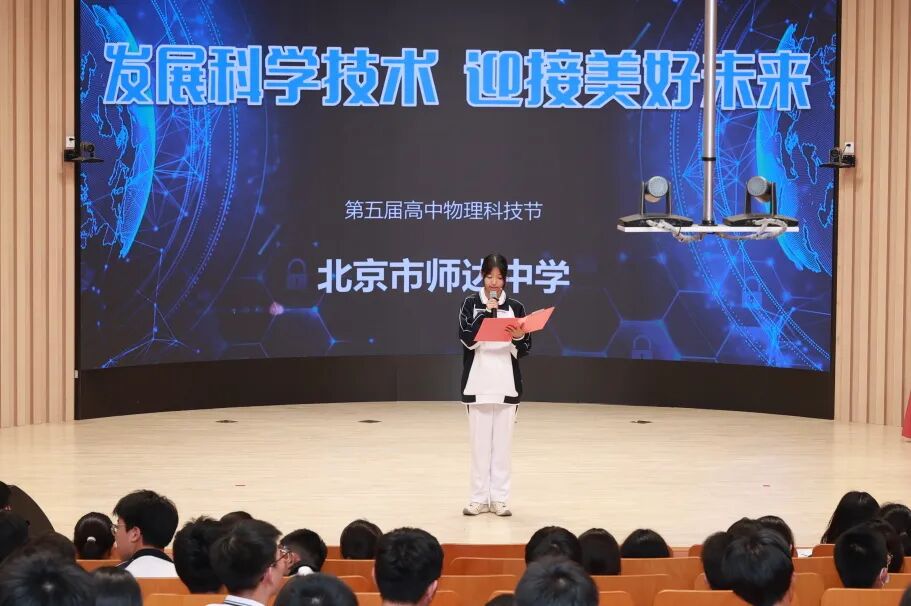 她高度赞扬了参赛同学将灵感变为现实的完整历程,尤其肯定了他们在面对挫折与挑战时展现出的坚韧不拔和遵循科学规律的宝贵品质。魏校长指出,培养科学严谨的治学精神是本届物理科技节的核心价值之一——科学容不得半点虚假。她特别提醒未来可能投身自然科学领域的同学们,当面对海量数据乃至颠覆性挑战时,坚守初心、秉持严谨科学的态度至关重要。这正是校训“严谨创新”精神的核心体现,是科学道路上宝贵的财富。