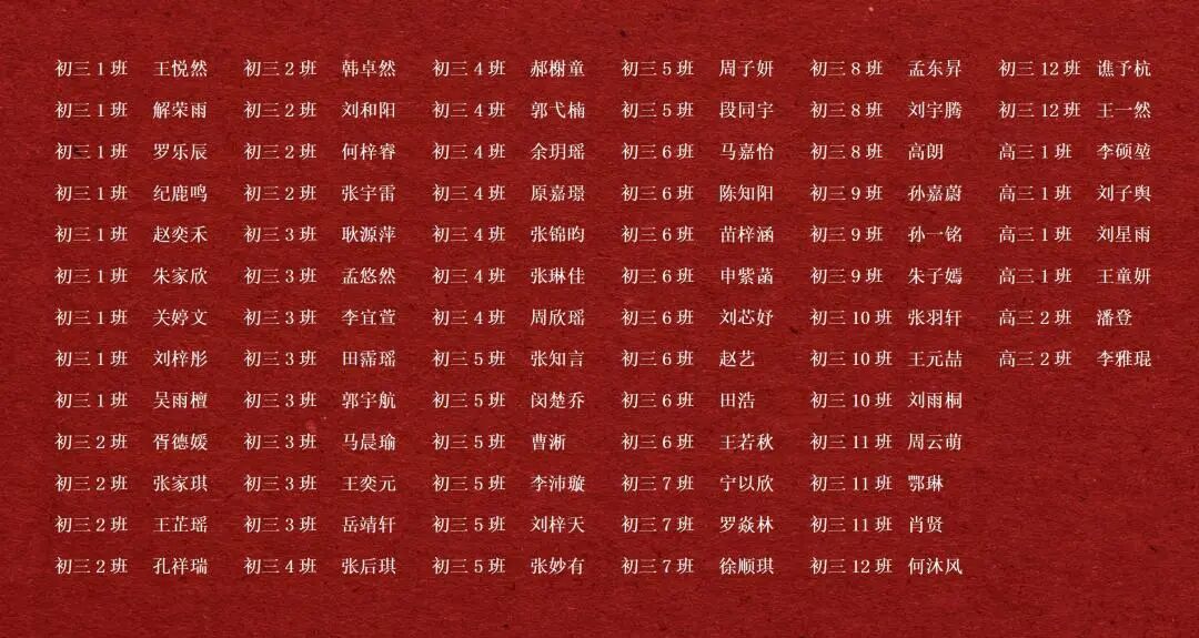 初三6班 高一1班 高二1班 高三1班
