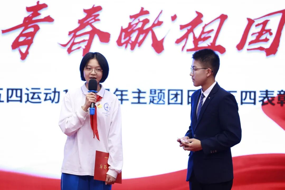 表彰大会上,6位少先队员代表带来的一首《五四的火焰》诗朗诵,唤起我们对五四运动的追忆,警醒着我们铭记历史,激发了我们对青春、理想和未来的思考。