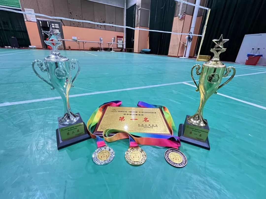 百舸争流,奋勇争先。2024年天河区“中国体育彩票”中小学运动会羽毛球比赛,我校羽毛球队不畏艰难,奋勇拼搏,经过紧张激烈角逐,荣获“初中组团体总分第一名”。
