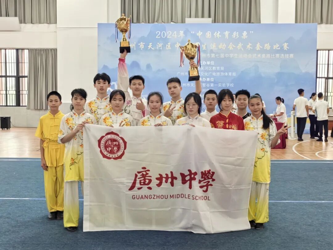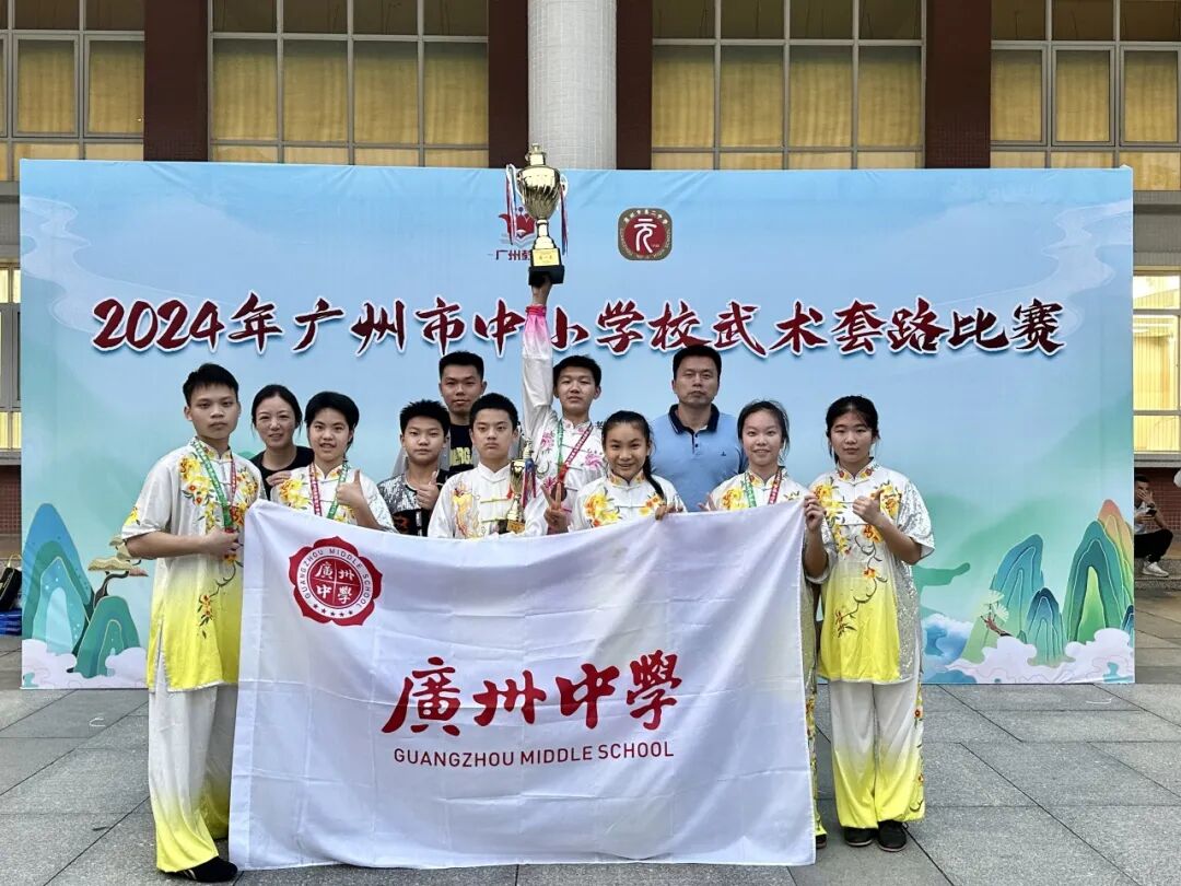 我校武术队在2024年广州市中小学武术套路比赛荣获中学组集体项目第一名、第二名1项、第三名3项、第四名2项、第五名4项、第六名2项、中学组团体总分第五名的优异成绩。