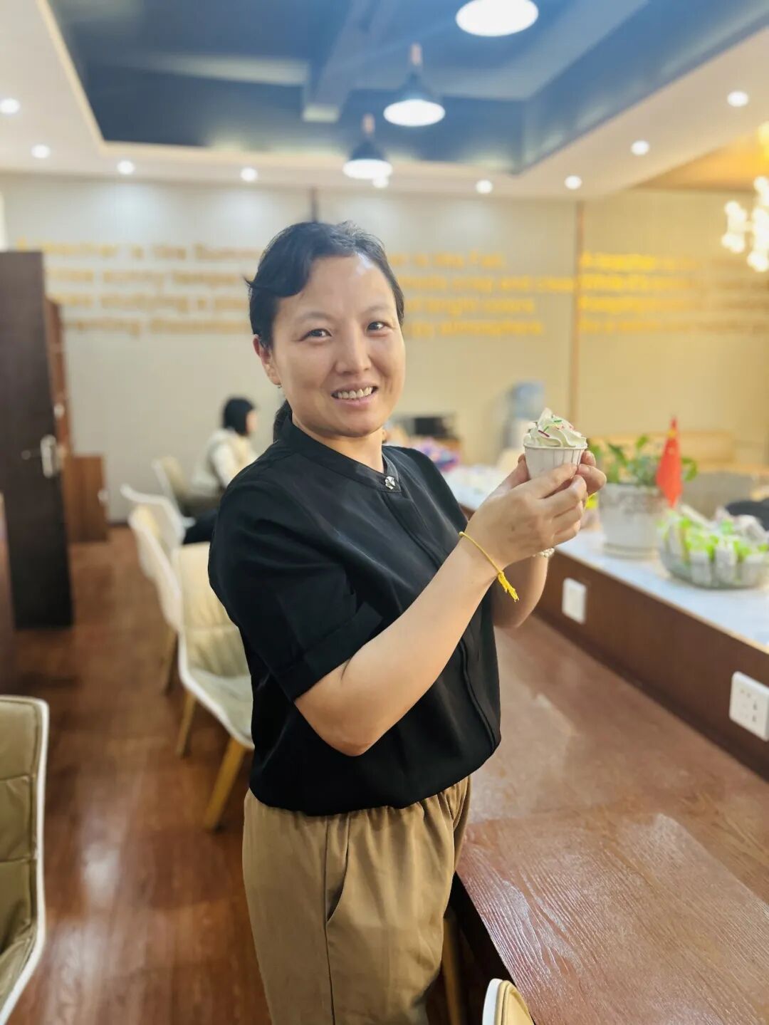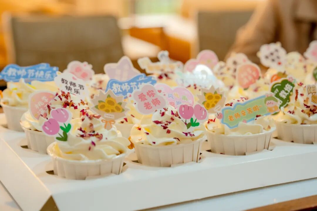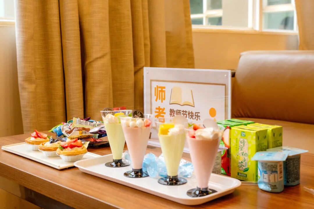教师节清晨,党委书记李国琼,党委副书记、常务副校长周刚等学校领导就走进课堂,为老师们送上营养早餐表达一份清晨的问候;教师休息室也布置了温馨茶歇区,甜品、咖啡、鲜花相伴,让老师们在课间休憩时也能感受节日的甜蜜与关怀。