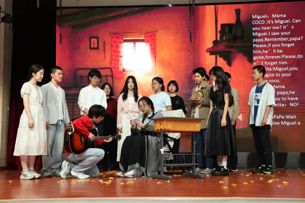 高一(2)班《寻梦环游记》讲述热爱音乐的小男孩米格,穿越到亡灵世界的奇妙冒险,传递着 “死亡不是终点,遗忘才是” 的主题。