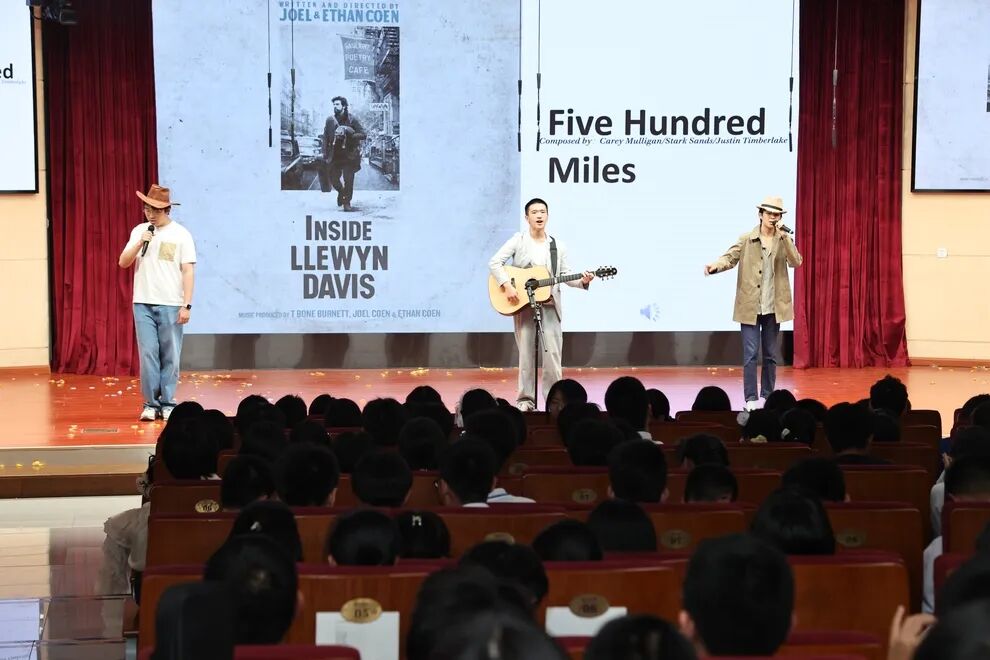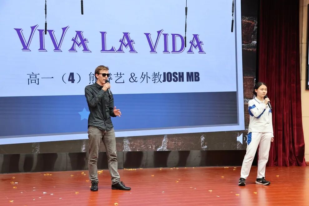 同学们与外教Josh MB一起演绎了不同风格的英文歌曲,为这场视听盛宴画上完美句点,赢得全场经久不息的掌声。