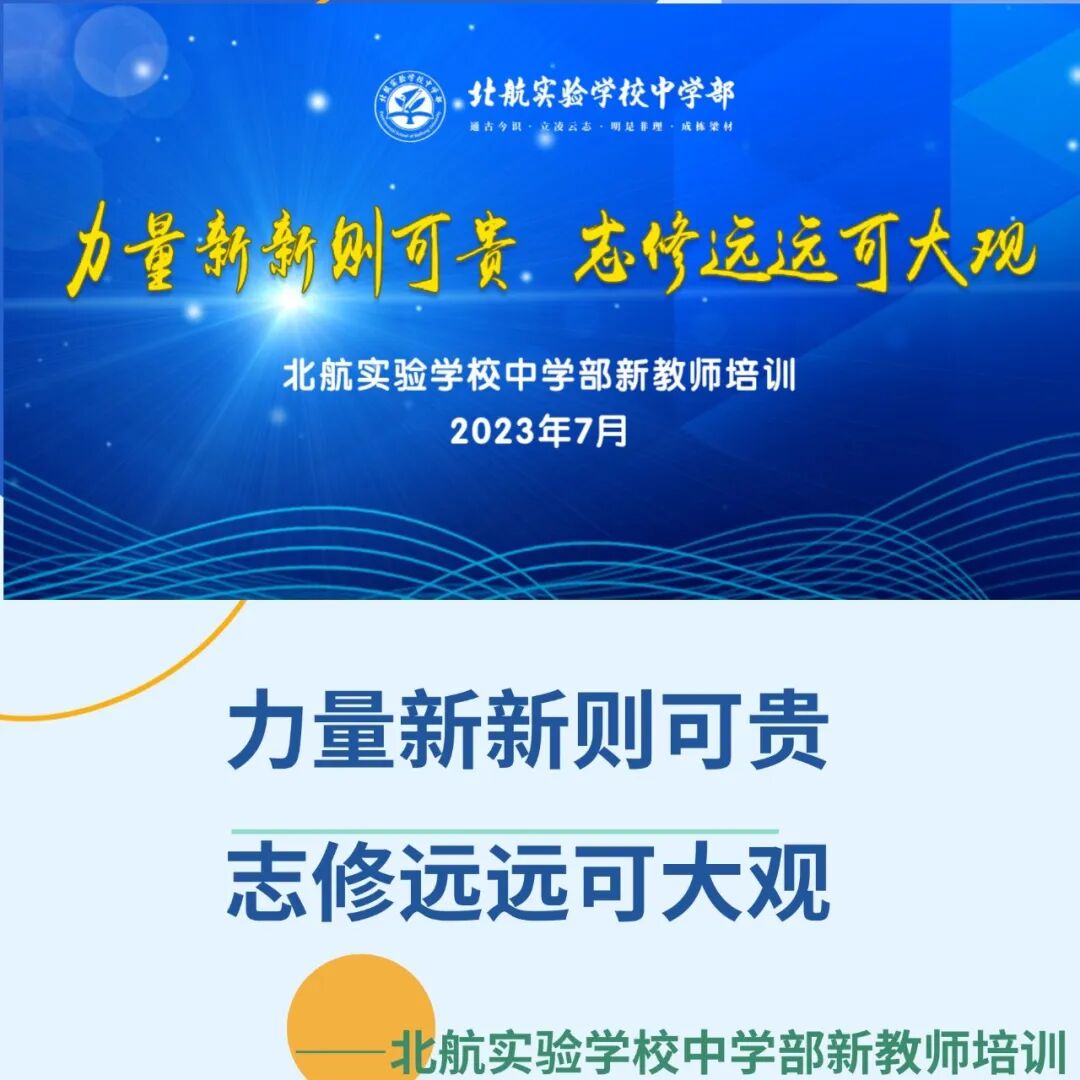 “力量新新则可贵,志修远远可大观”。2023年7月14日上午,北航实验学校中学部举行了新教师培训。来自语文、数学、英语、道德与法治、地理、生物学科的新教师参加了此次培训。学校领导出席了简短而热烈的欢迎仪式。本次培训由中学部教师发展中心组织。