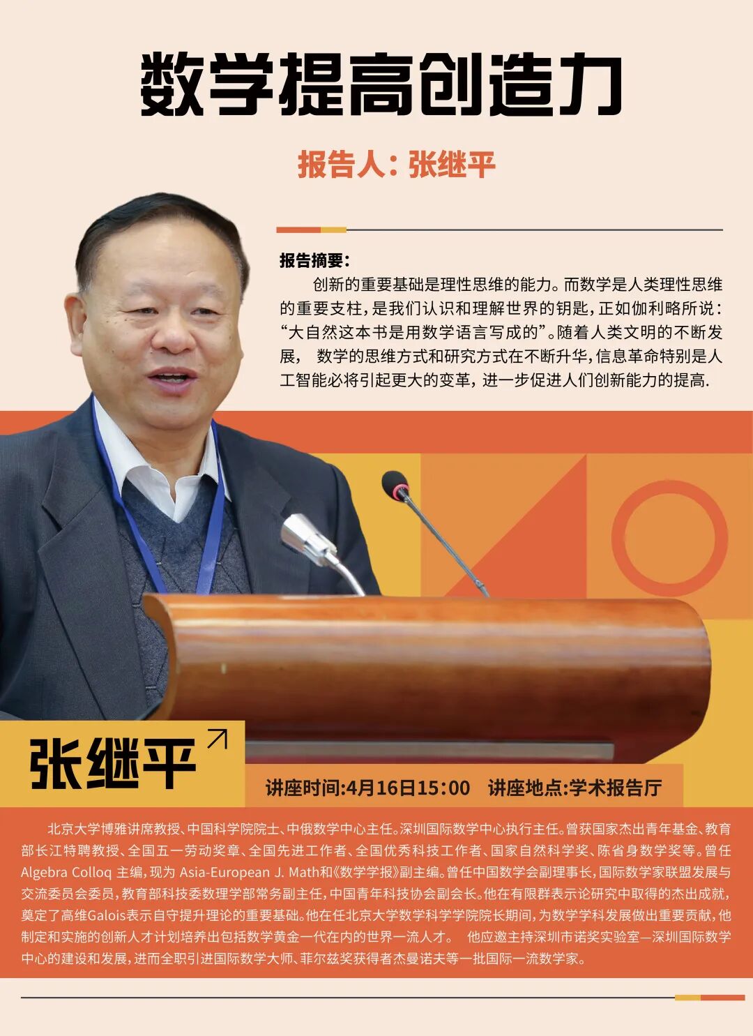 ▲院士讲堂:张继平院士《数学提高创造力》讲座