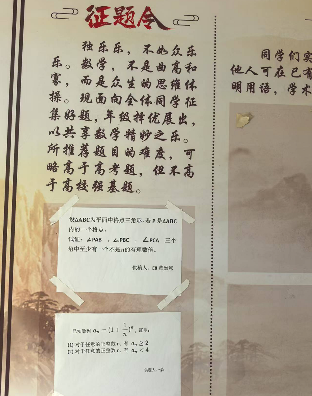 ▲数学江湖征解令、征题令:学生参与命题和互评,“一题多解”展现思维之美