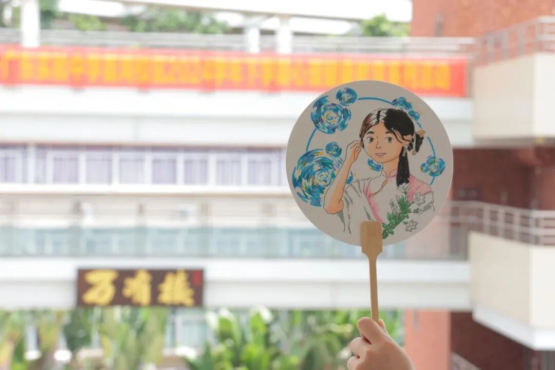 有班主任漫画肖像的团扇