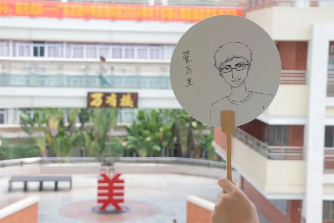 高一:班主任团扇肖像漫画作品
