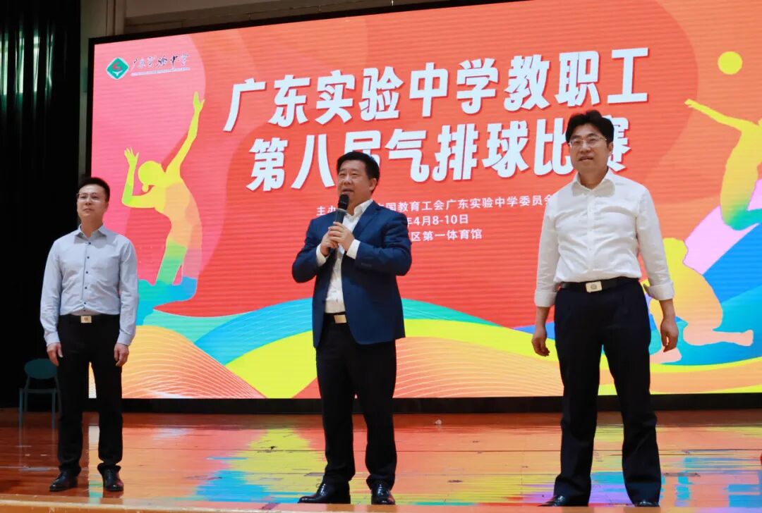 广东实验中学党委书记全汉炎、校长蔡骘、副校长朱伯东亲临比赛现场,为教职工们加油打气。全汉炎书记在致辞中表示,希望教职工们能够在赛场上勇于拼搏、积极协作,以“敢为人先,追求卓越”的精神,让赛场成为凝心聚力的舞台,用汗水书写属于省实人的热血篇章!