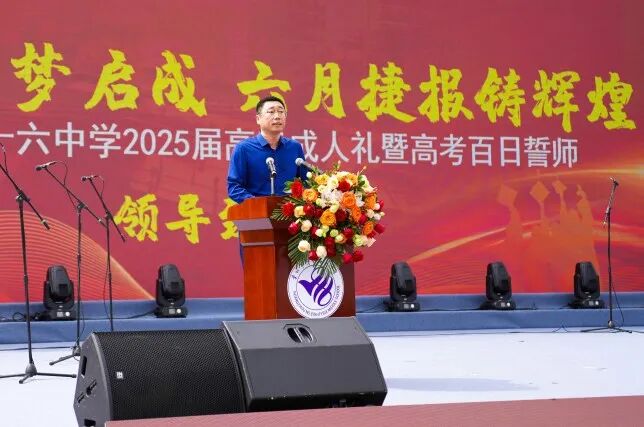 王树林副校长代表学校向2025届高三学子致贺词,希望以智慧与深情为学子铺就未来之路。愿你们永远保持对梦想的热忱,让青春在奋斗中绽放绚丽光彩!百日冲刺,科学备考;凝心聚力,共创奇迹!”