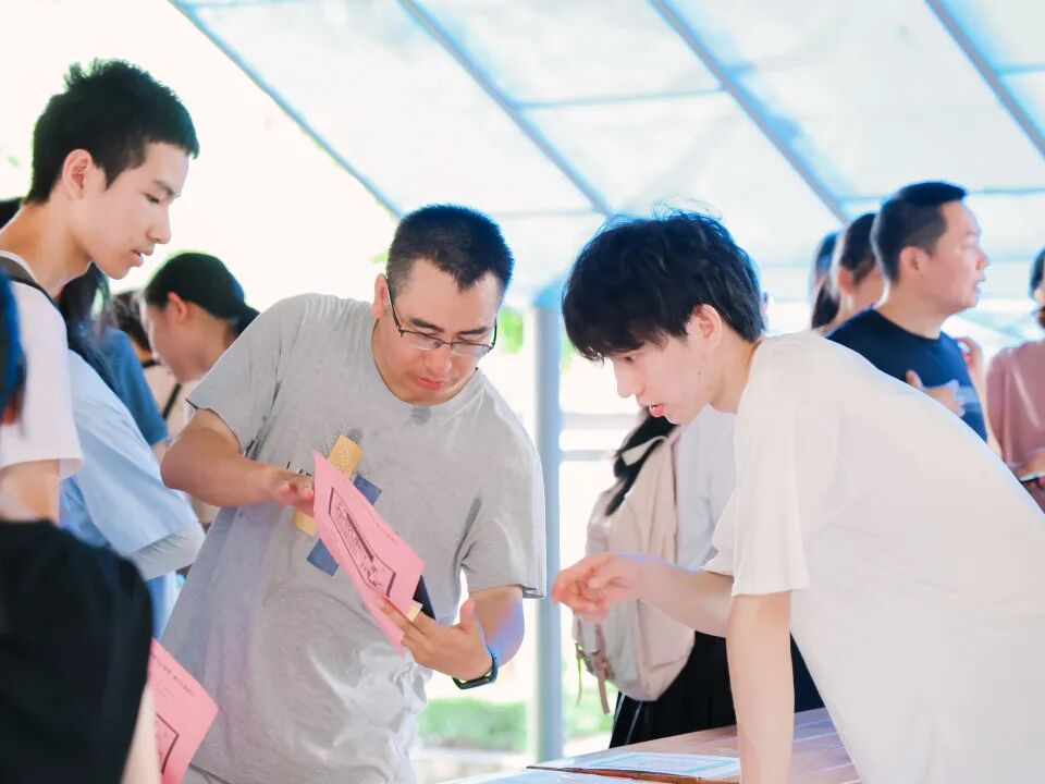 学校团委组织了志愿者进行新生报到指引。学长、学姐不仅耐心细致地引领新同学完成报到,还热情地和新同学分享高中学习的宝贵经验。