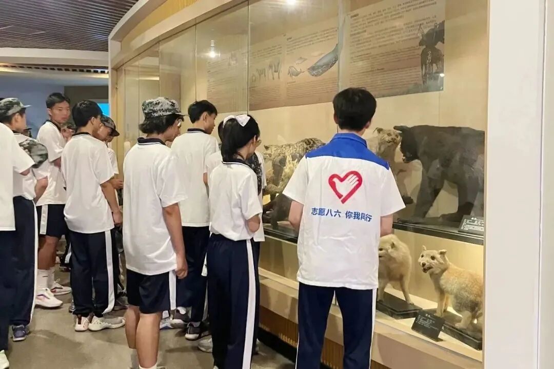军训期间,在校团委组织下,我校新生参观校史馆、动物博物馆活动顺利进行,高一、初一新生共计26个班级一千余人先后进行参观。团委学生会、志愿队的30余名学生干部们积极参与了这次导览活动,他们认真尽责,热情有礼,一遍又一遍耐心细致地给新生们讲解,给新生留下了深刻的印象。