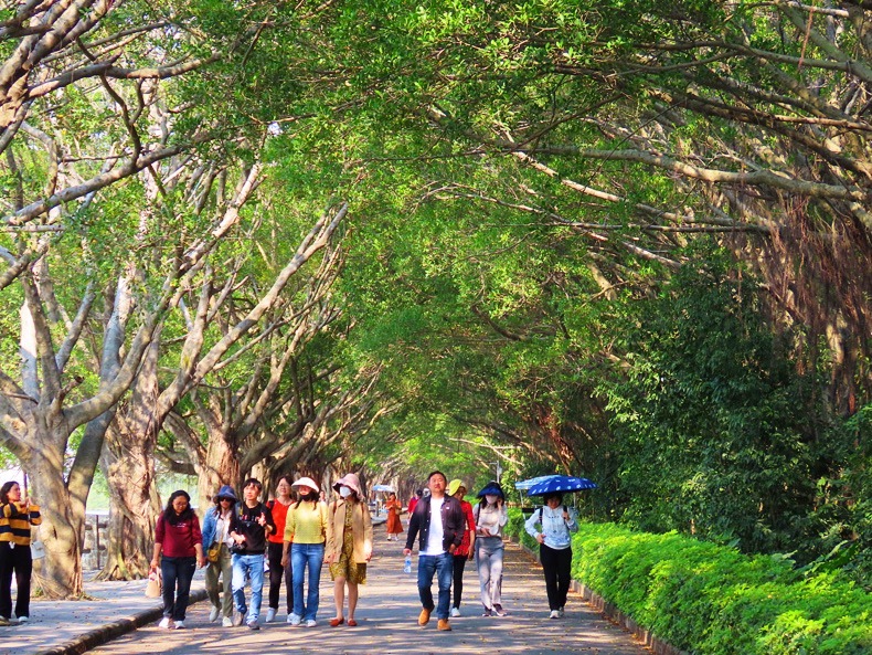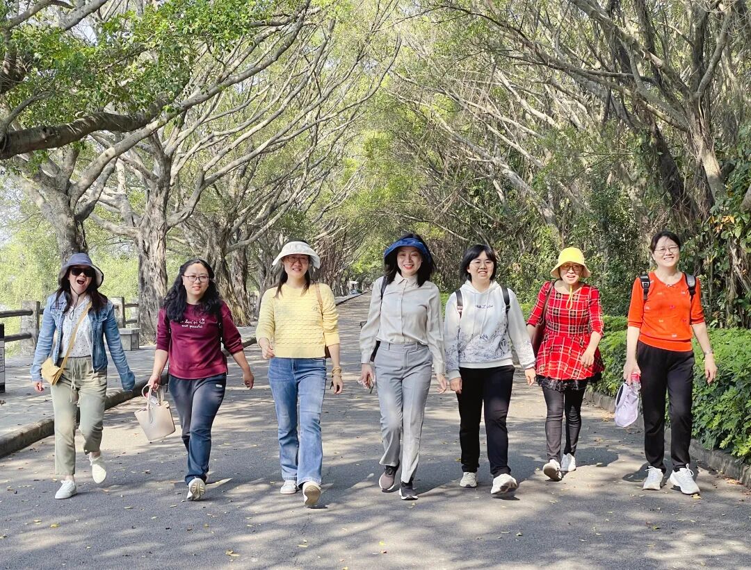 海湾翠带,滨江鸟鸣。热带植物在南沙湿地公园蓬勃生长,为游人带来荫凉与惬意。教工们在南沙湿地岸边散步,清爽的海风习习而来,为心灵带来最温柔的抚慰,美丽的笑容在开怀畅谈中绽放。