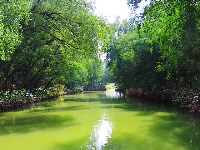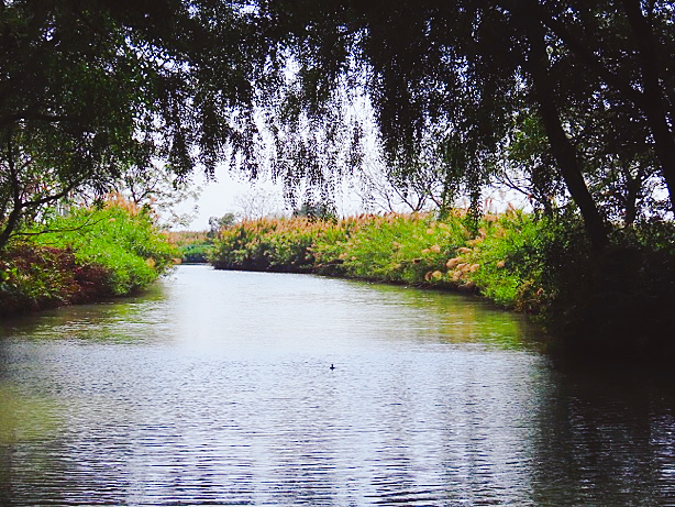 在南沙湿地核心区域,红树植物浸润在海水中安静地生长,形成了一片静谧而美丽的海上森林。教工们乘着扁舟穿梭在茂密的红树林和芦苇荡间,只觉幽美清净、远离尘嚣。此处虽无桃花,却也似桃花源一般醉人。