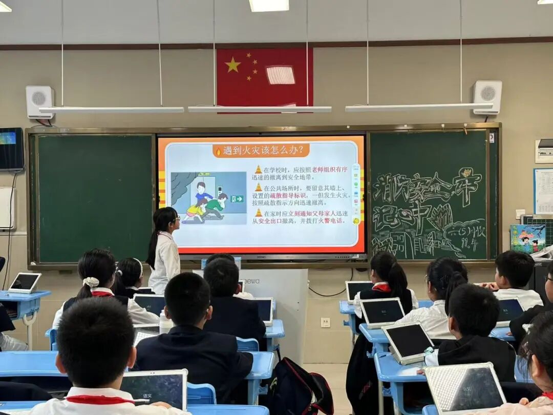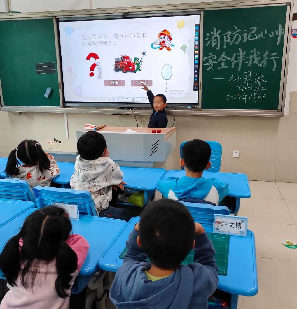 六(5)中队利用班级的智慧课堂环境,播放图片、视频等资料,向队员们展示了火灾的巨大危害。内容涵盖消防器材使用、火灾报警方法等多方面知识的消防知识竞赛更是将班会气氛推向巅峰。展现出对消防知识的浓厚兴趣和扎实掌握。