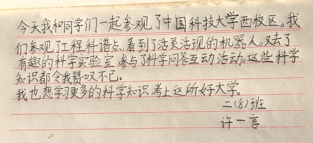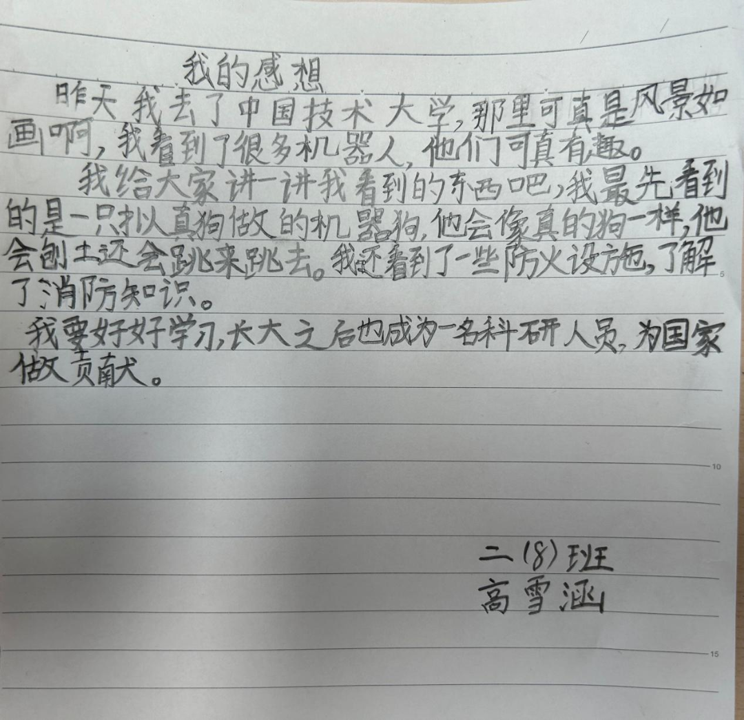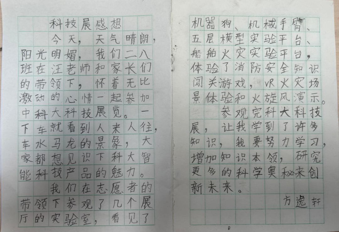 “科学需要梦想,发明贵在创新。”参观活动结束后,队员们在赞叹科技的神奇之余,纷纷写下自己的科学梦,希望有朝一日,梦想大放异彩,结出累累硕果。