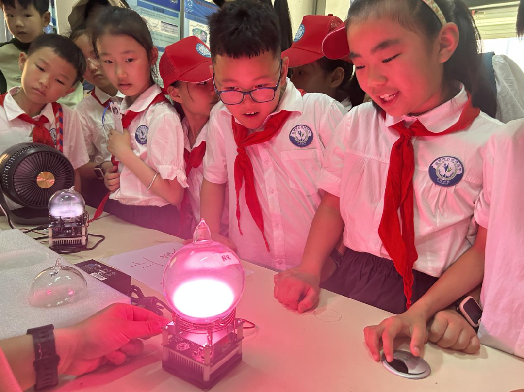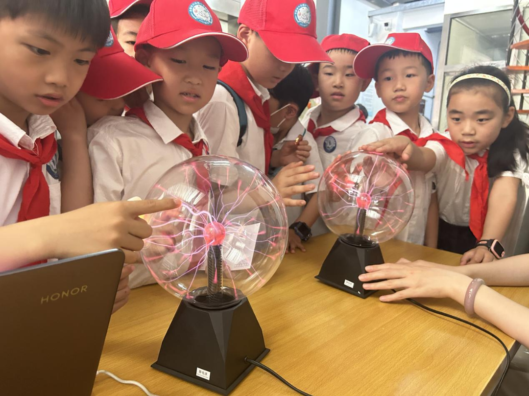“核探测与核电子学国家重点实验室”的趣味实验和互动活动是最令人流连忘返的所在了。队员们亲自感受到了趣味的特斯拉线圈的电极,亲手触摸到了充满梦幻色彩的等离子体放点球,学习到聚变能源—取之不尽用之不竭……一个个妙趣横生的科学小实验吸引着队员的关注,一次次的亲身体验带领着队员们认识科学,走进科学,探索科学。