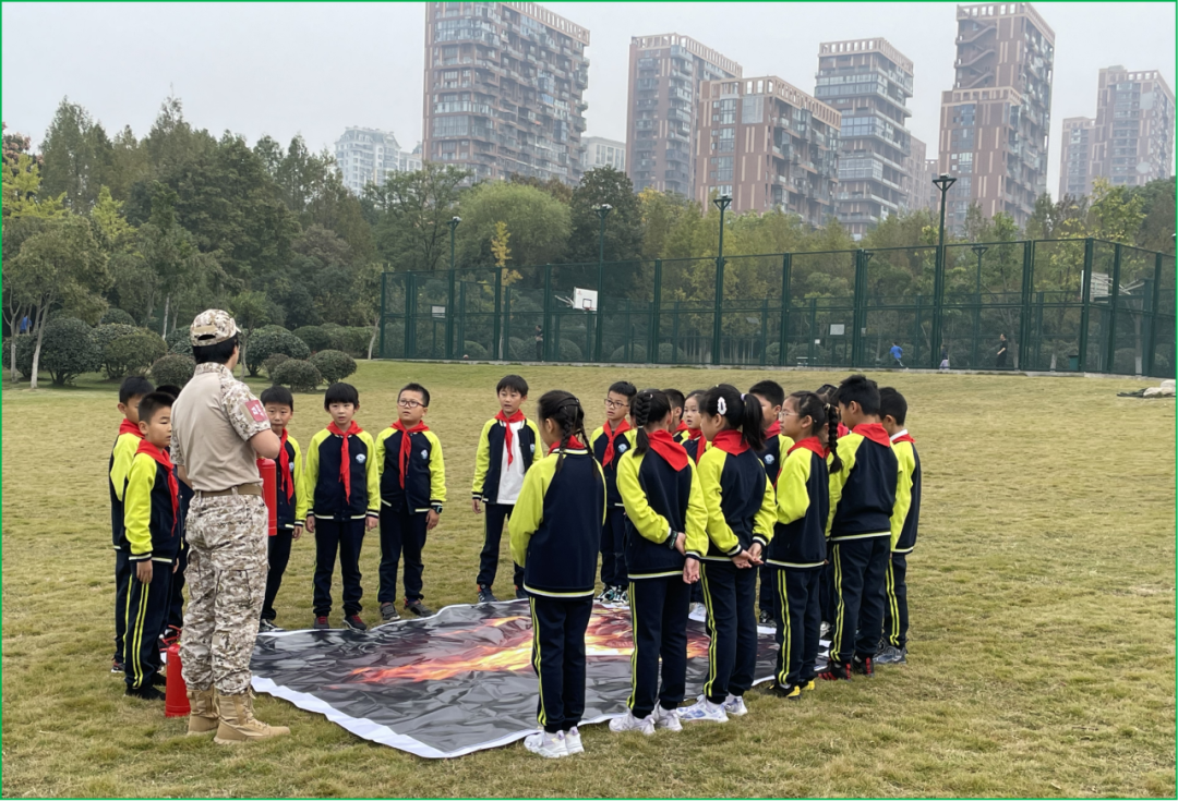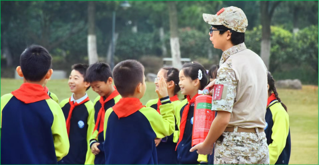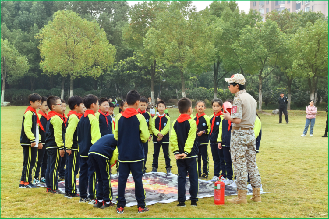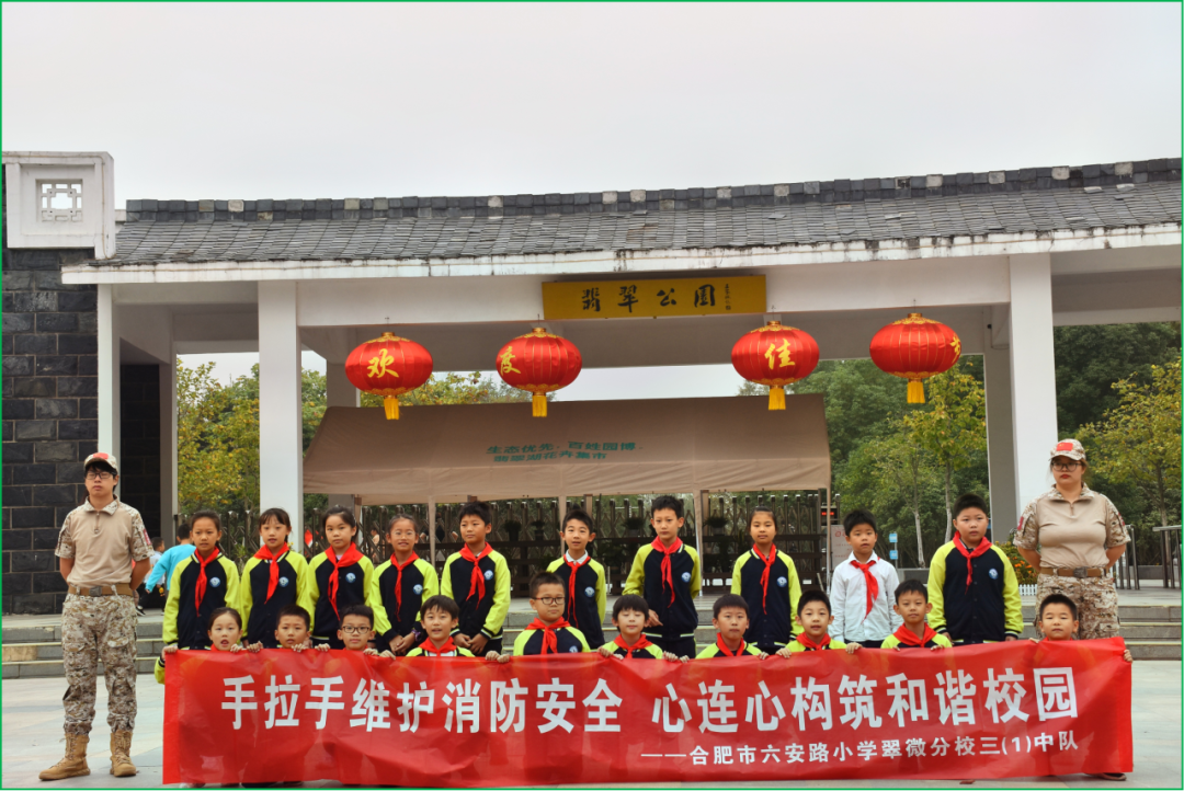 在第32个全国消防安全宣传教育日来临之际,为进一步增强学生的消防安全意识,提高应对突发事件的能力,防患于未然,合肥市六安路小学翠微分校三(1)中队的少先队员们在辅导员余红群老师和家长们的带领下,走进翡翠湖公园开展“手拉手维护消防安全,心连心构筑和谐校园”主题实践活动,跟着教官上了一堂特殊而难忘的消防安全实践体验课。