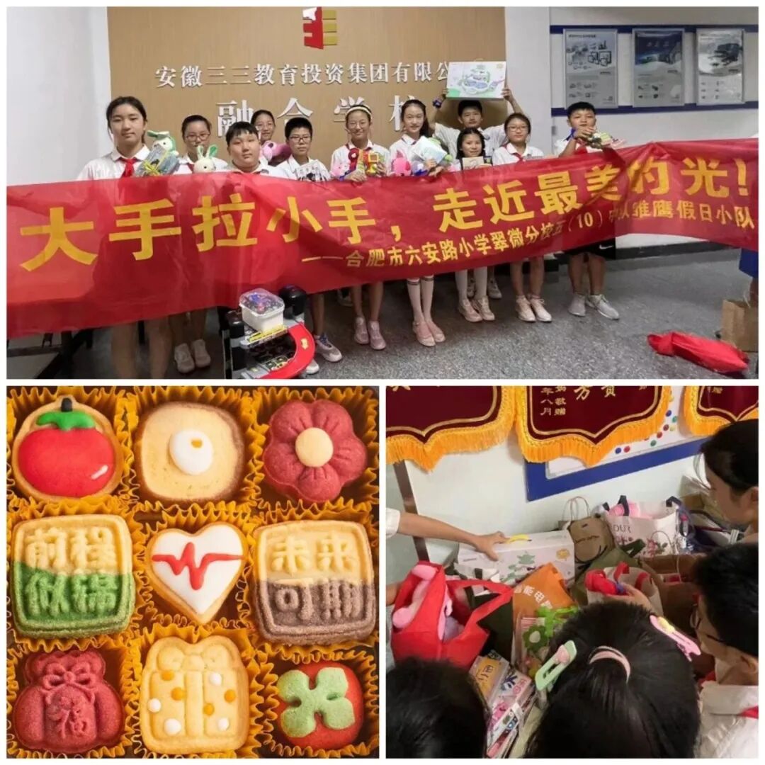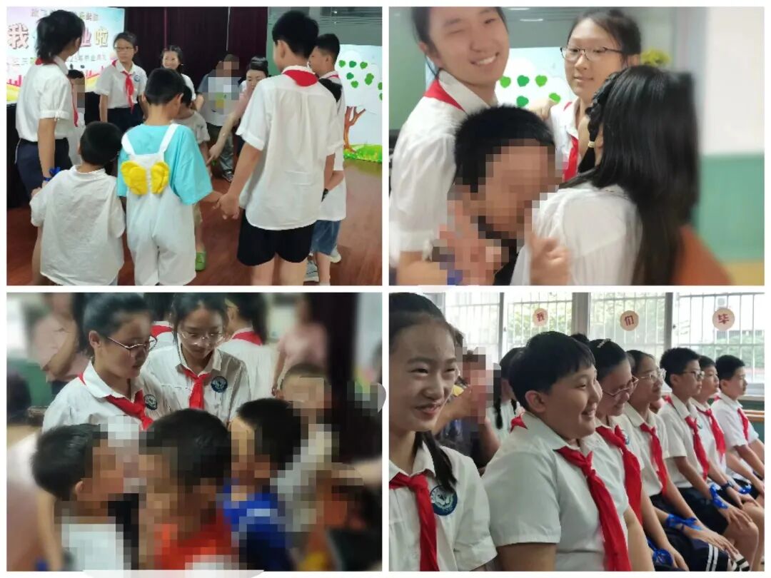 为大力倡导少先队员关爱特殊群体,积极弘扬“奉献、友爱、互助、进步”的志愿服务精神。8月11日下午,合肥市六安路小学翠微分校五年级10班的队员们来到三三教育集团融合学校开展“大手拉小手,走进最美的光”志愿服务活动。为一群“星星的孩子”送上关爱与祝福,并参加了他们的毕业典礼陪伴他们度过了一段愉快的时光。