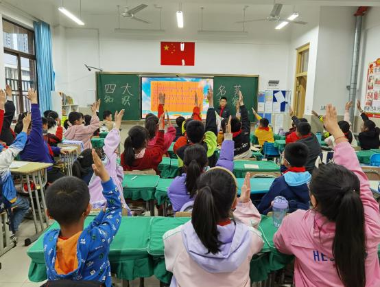 各班搜集整理四大名著相关知识张贴在教室展板上,营造读书氛围,利用阅读课进行知识竞赛大PK,同学们卧虎藏龙你争我抢通关升级,各个都有备而来。