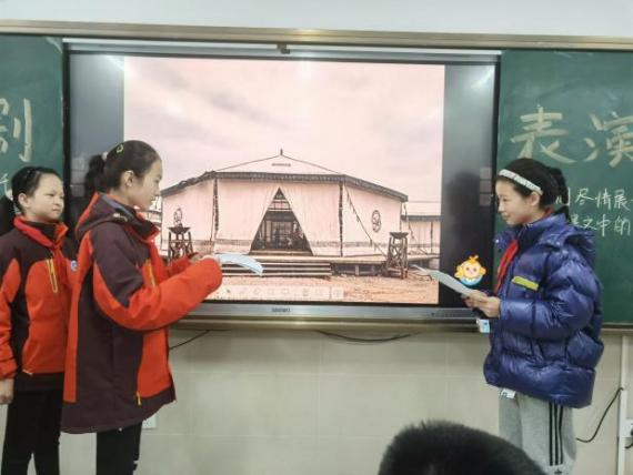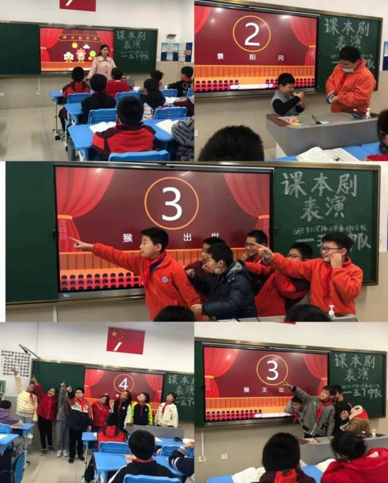 最后是课本剧表演。课本剧集语文、美术、音乐等多门学科为一体,通过舞台表演、角色体验,与文本亲密接触,既可以激发学生的创造欲和探究欲,还能培养学生的活动能力、组织能力、创造能力、审美情趣等综合素质同学们根据自己的兴趣爱好,自由组队,立足语文课本,选定表演的剧本,初步确定演出思路与剧本,在美术老师的指导下,学生们充分发挥想象力,制作精美的道具和服装,修改台词反复练习,在班级进行了展演收获一致好评。