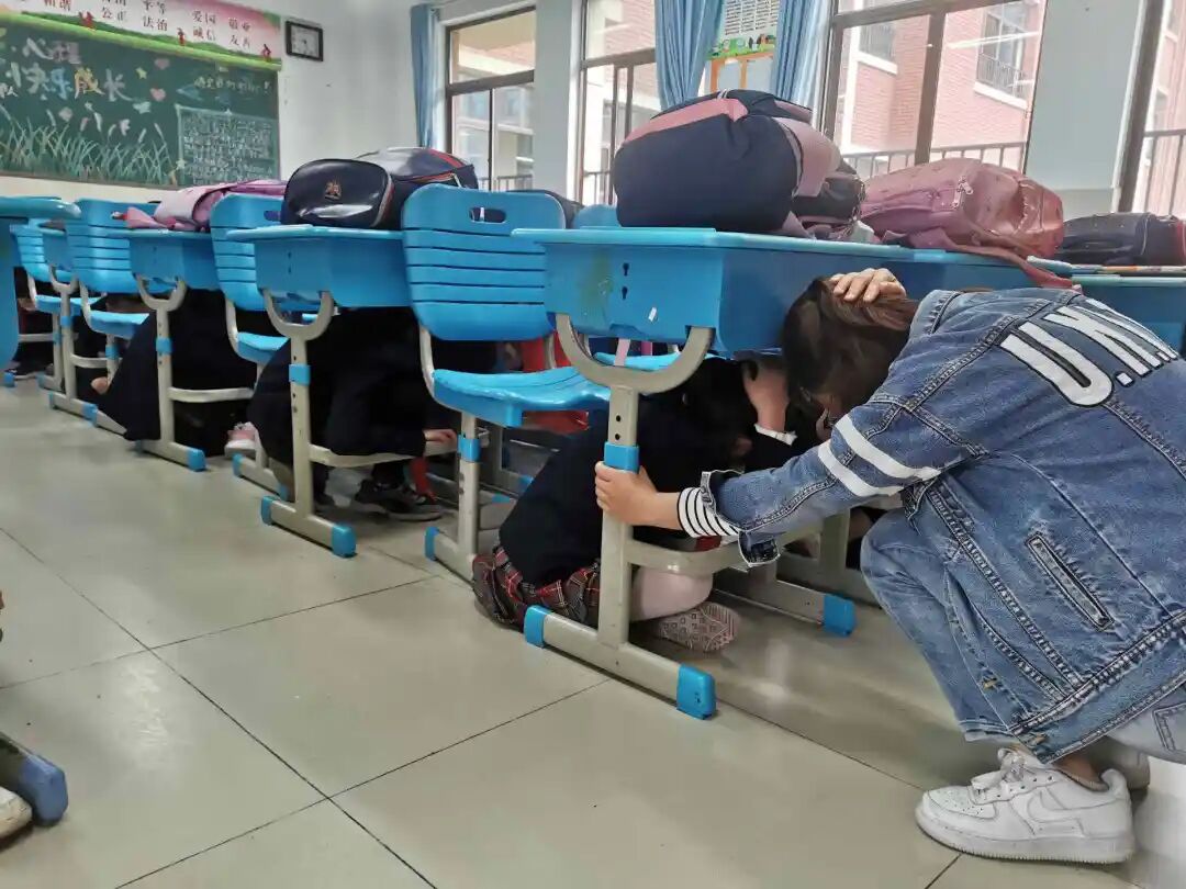 5月12日上午9:10,在一阵连续短促警报声响起声中,演练活动正式开始。班级内正在上课的老师,立即组织学生按照既定的流程进行应急疏散演练。各班级由2名靠近前后门的学生迅速将门打开,就地蹲下,其余学生利用课桌、墙角有序进行强震紧急避险;待疏散警报响起后,学生在老师的指挥下迅速、有序从教学楼安全撤离,跟随转移安置组有序疏散至紧急安置场所。整个疏散过程全体师生3600余人共用时3月58秒。