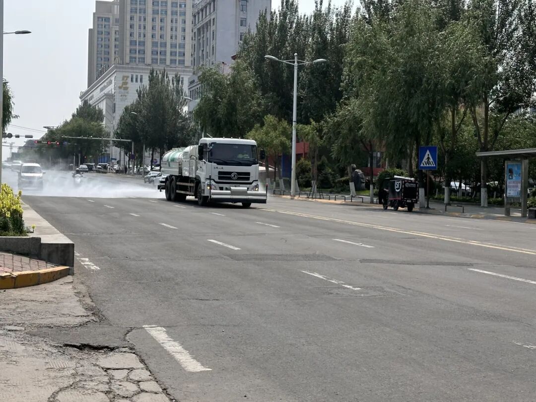 在炎炎夏日,为有效应对高温天气,给市民营造一个清爽、整洁的城市环境,市环卫服务中心积极行动,充分发挥洒水车和水扫车的作用,全面开展夏季作业。