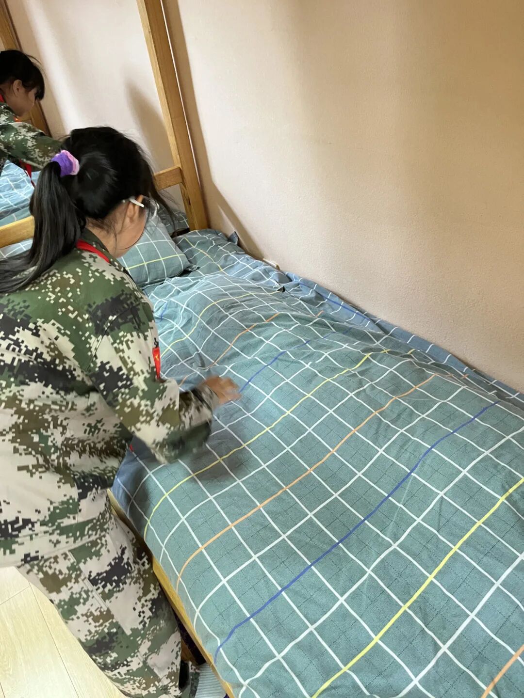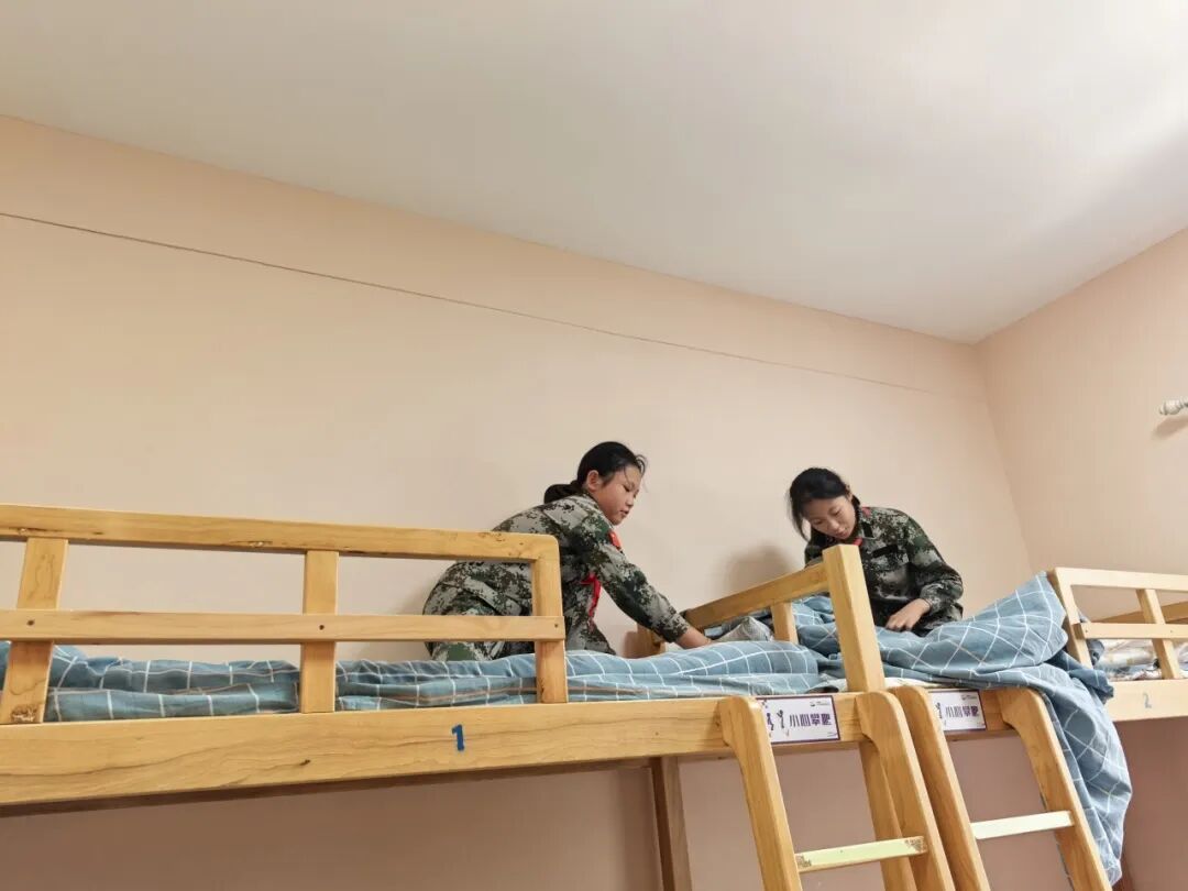 “出门看队伍,进门看内务。”内务整理是军训的重要一环。在教官的指导下,同学们学习叠被子、摆放物品、打扫卫生。从一开始的笨拙到后来的熟练,同学们将宿舍打理得井井有条。内务整理不仅培养了同学们的自理能力,更让他们养成了自律的好习惯。