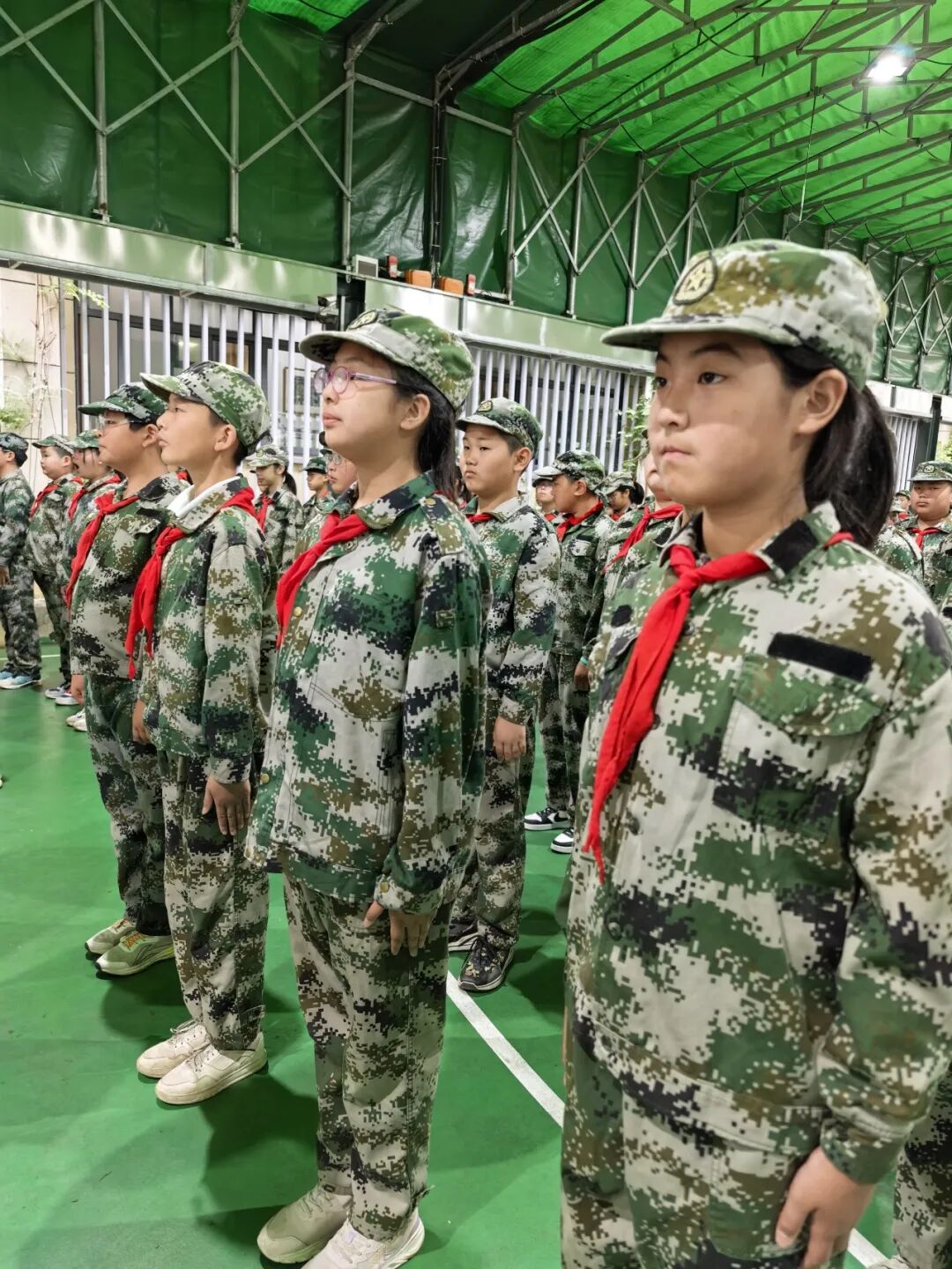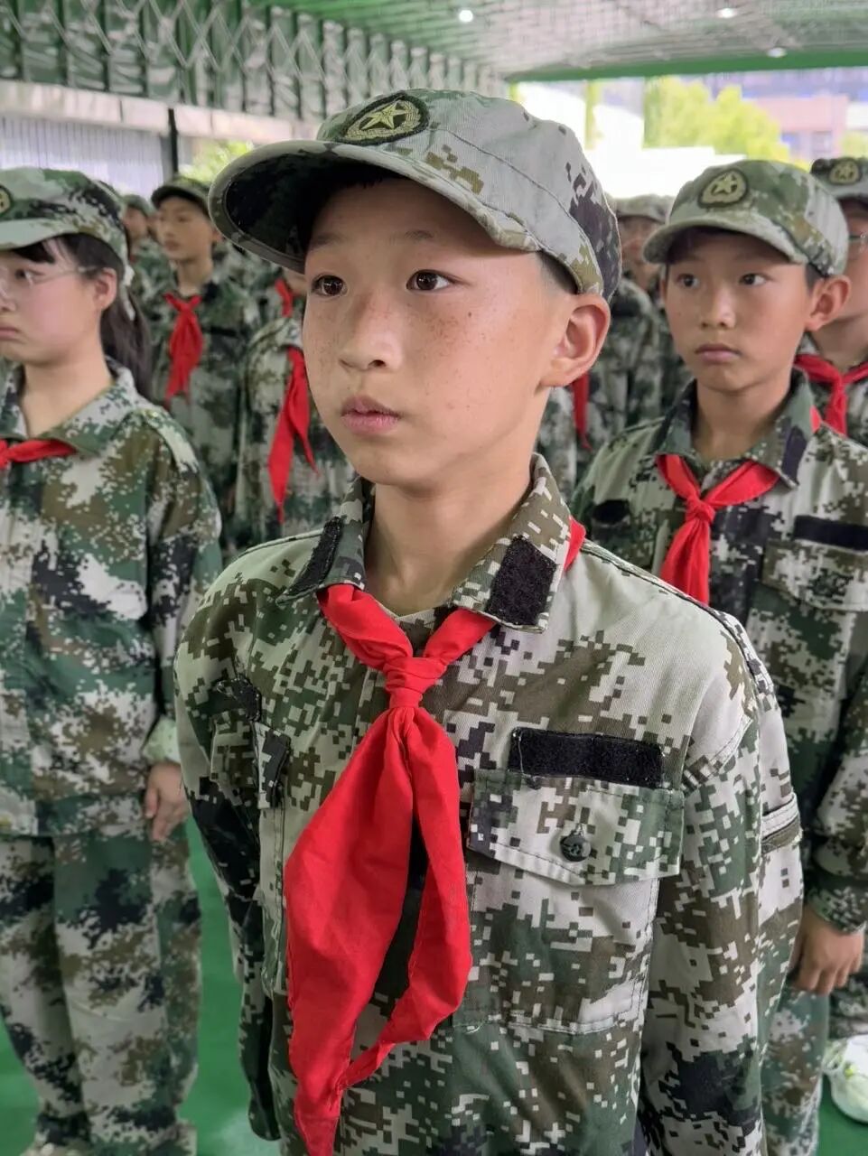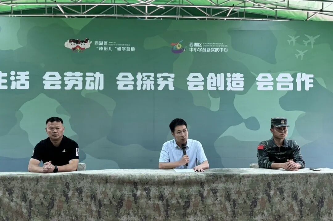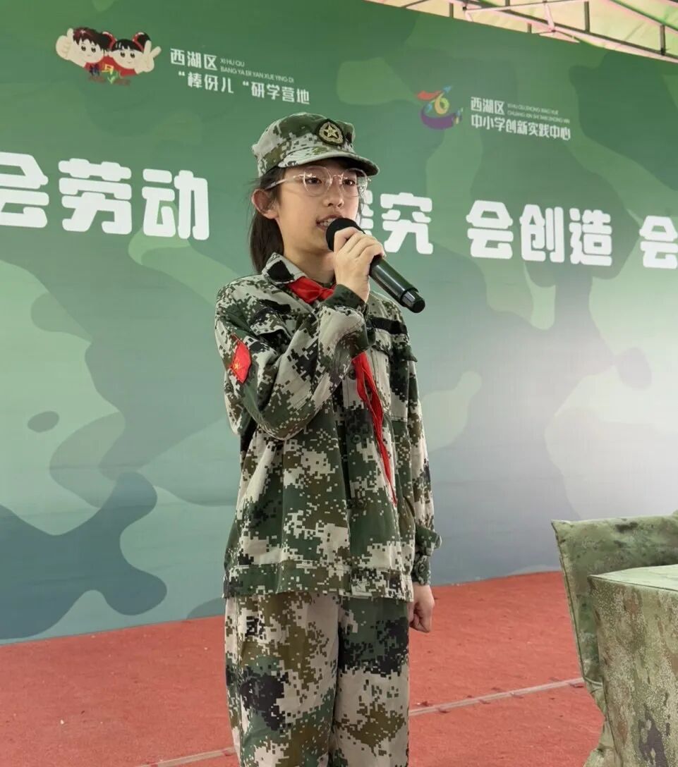 清晨的阳光洒在西湖区中小学创新实践中心的操场上,同学们身着迷彩服,精神抖擞地站成整齐的方阵。开营仪式上,学生代表江雨晨同学宣读了入营誓词,誓言坚定有力。郑影竹副校长在讲话中鼓励同学们在军训中磨炼意志,培养团队精神。随着一声声嘹亮的口号,同学们开启了他们的军旅征程。