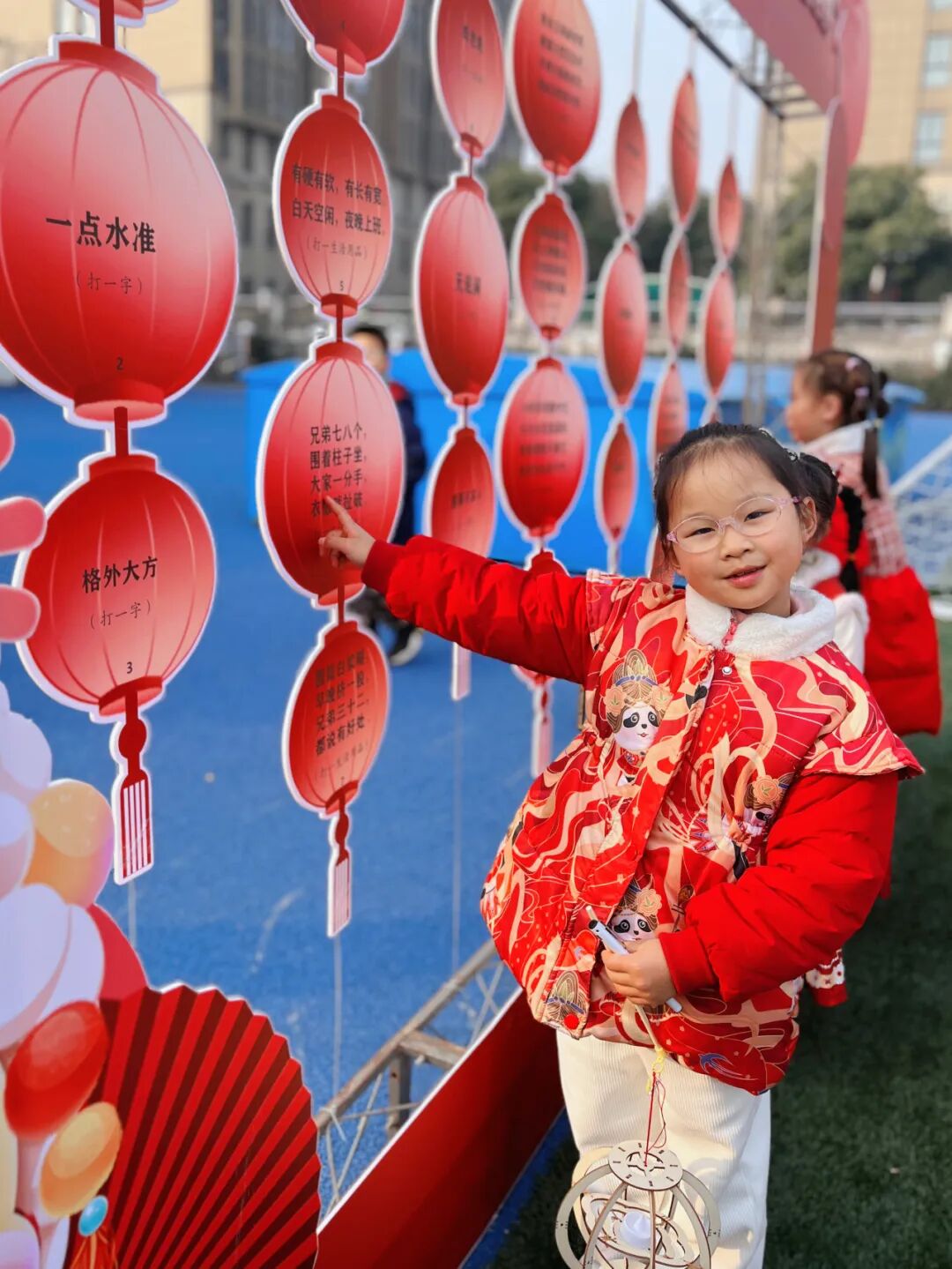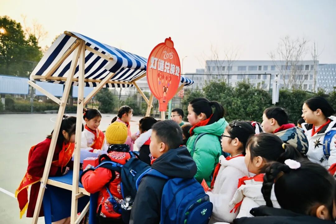 不远处,“灵蛇纳福猜灯谜” 活动正在火热进行中。灯谜内容丰富多样,有关于新年习俗的,也有科普小知识。孩子们或独自思考,或与小伙伴们热烈讨论,每当猜出正确答案,便能抽取上上签。“我抽到的是‘学业进步,健康快乐’,太好啦!” 孩子们在感受传统文化魅力的同时,也收获了满满的好彩头。
