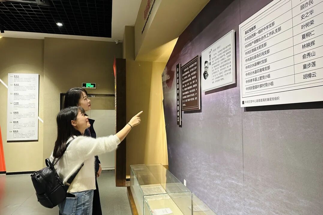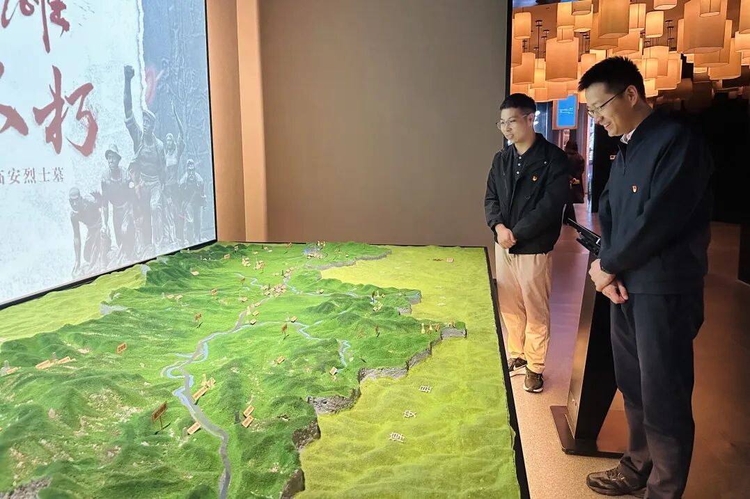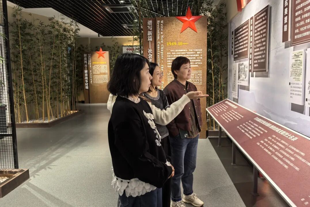 纪念馆内,一幅幅珍贵的历史照片、一件件饱经沧桑的实物展品,生动再现了那段波澜壮阔的革命岁月。通过环绕式立体布局呈现,党员教师们仿佛置身于战火纷飞的年代,切身感受到了革命先烈们不畏牺牲、勇往直前的精神。
