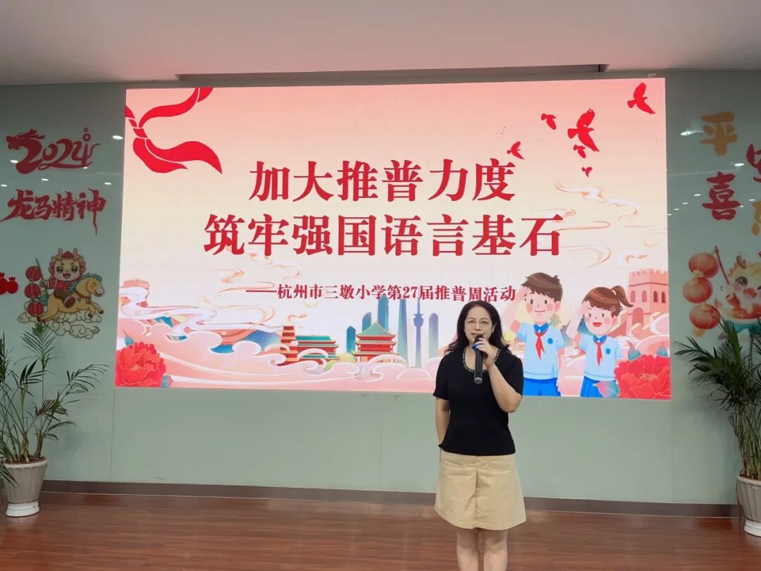金风送爽,2024年9月16日至9月22日,学校迎来了第27届全国推广普通话宣传周。今年推普周的主题是“加大推普力度,筑牢强国语言基石”。杭州市三墩小学兰里校区所有师生围绕主题策划并开展了一系列丰富多彩的活动。