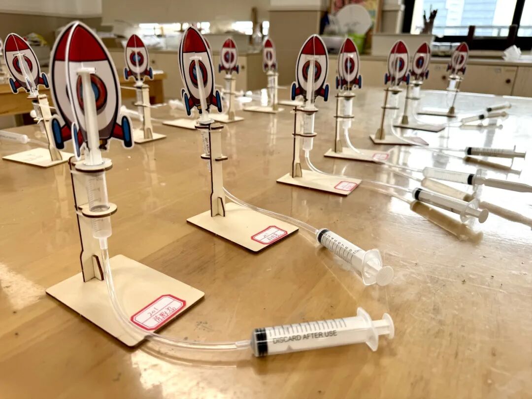 同学们在学习竞技场百舸争流,在科技赛中勇当先锋,相信这次气火箭的制作也在大家的心中种下了一个航天科技梦。