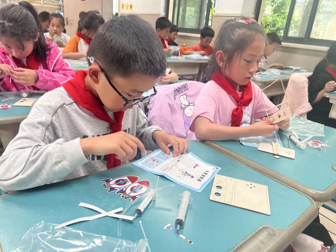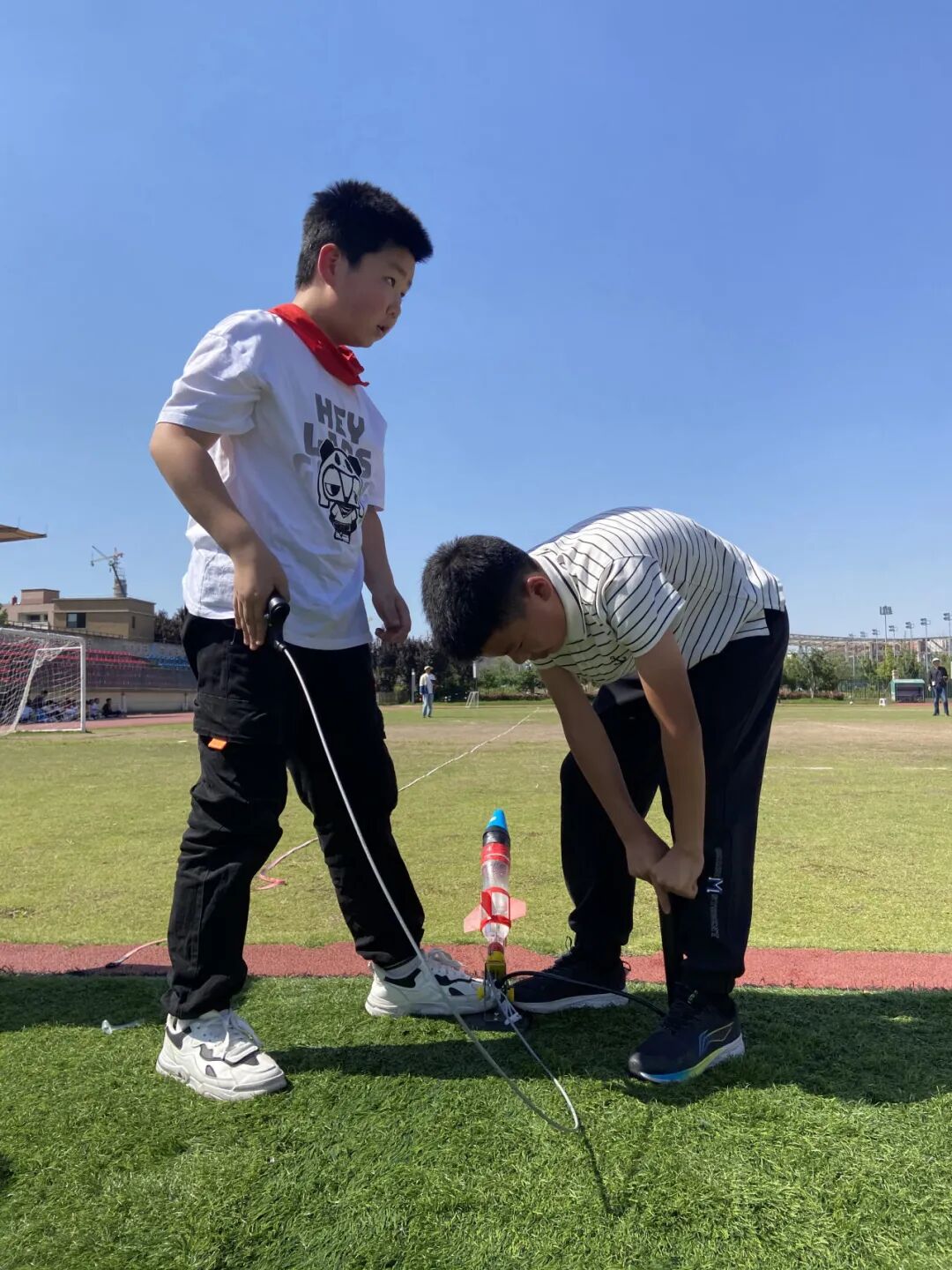 从东方红一号到神舟十八号,见证着中国航天事业从无到有、从小到大,迈向世界航天强国的历程。在这伟大航天精神的激励下,五年级组开展了水火箭项目化学习活动,孩子们在情境化任务的驱动下设计、制作并不断改进水火箭,点燃了渴望探索太空的小火苗。通过这样的活动,不仅培养了学生的团队协作能力和创新精神,更加强了他们的动脑动手能力,让学生将课堂所学的知识延伸到课外。