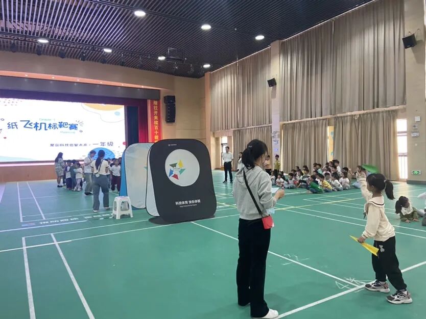 纸飞机是一项既培养学生动手能力,又发展学生动脑调试飞机技巧的益智活动,一年级的全体学生开展了精彩的纸飞机标靶赛活动。整个比赛分两个阶段:首先是以班级为单位,班主任组织全班选拔比赛,选出十位选手参加全校决赛,其次开展全年级比赛。随着比赛开始,参赛选手个个摆好架势,高举着纸飞机投掷。纸飞机在空中划过了一道道优美的弧线,有的飞机急促地正中靶标,而有的飞机则平稳优雅地擦肩而过,观众席上加油声、喝彩声此起彼伏……同学们通过这样的活动有所得、有所感、有所知,更体味到了科学的魅力。