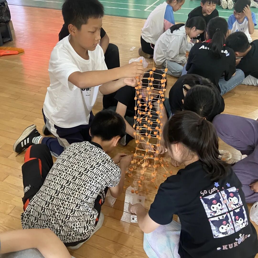 “看似简单的胡萝卜搭高比赛,其实里面暗藏着许多门道。”科学老师寿晓峰笑着说,“在搭建的过程中,提升了孩子们的综合素质。它考验的是学生动手能力,要将自己的创意、想象,成功转变成实物,这个过程会有不少困难,需要不断思考、修正,要十分细心。另外,小组队员要分工合作,沟通能力也非常重要。”