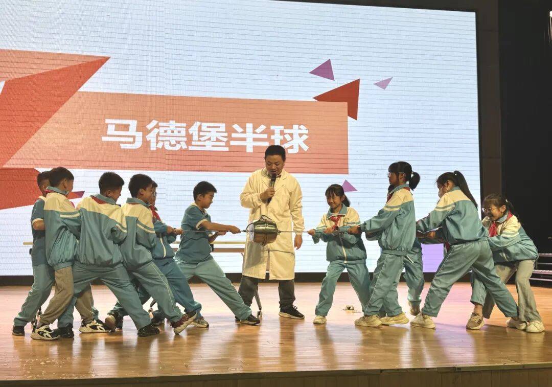 随后的“马德堡半球”实验,则是一场关于大气压强的直观展示。两个金属半球紧密贴合后,即使几位同学合力也难以将其拉开,直到连接抽气泵抽出球内的空气,才轻松分开,生动诠释了大气压力的存在及其强大的力量。这个经典实验不仅让孩子们惊叹不已。