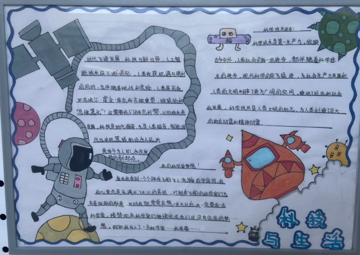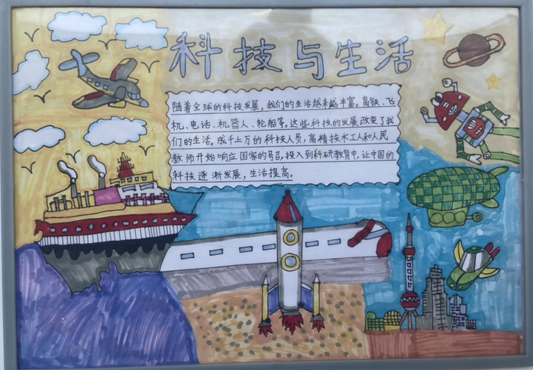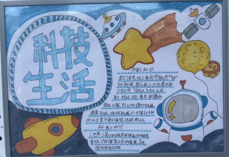 四年级开展了科技小报制作活动。整个比赛分两个阶段:首先是班主任在班里组织全班选拔比赛,选出能代表班级参加全校决赛的十位优秀选手,然后这些班级的优秀作品再开展全年级决赛。一张张优秀科技小报作品不仅版面设计丰富多彩,而且内容科技感十足……同学们通过这样的活动有所得、有所感、有所知,更体会到了科学的魅力。