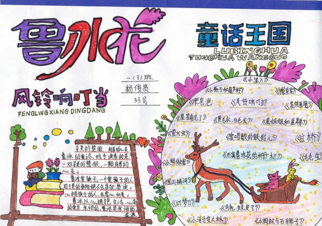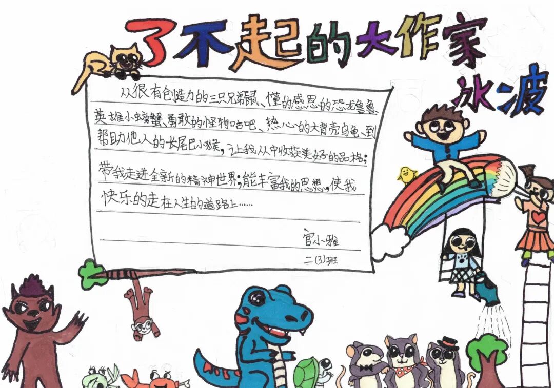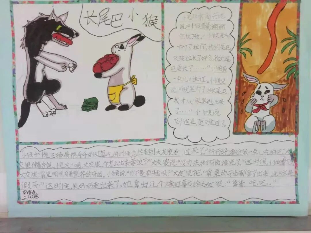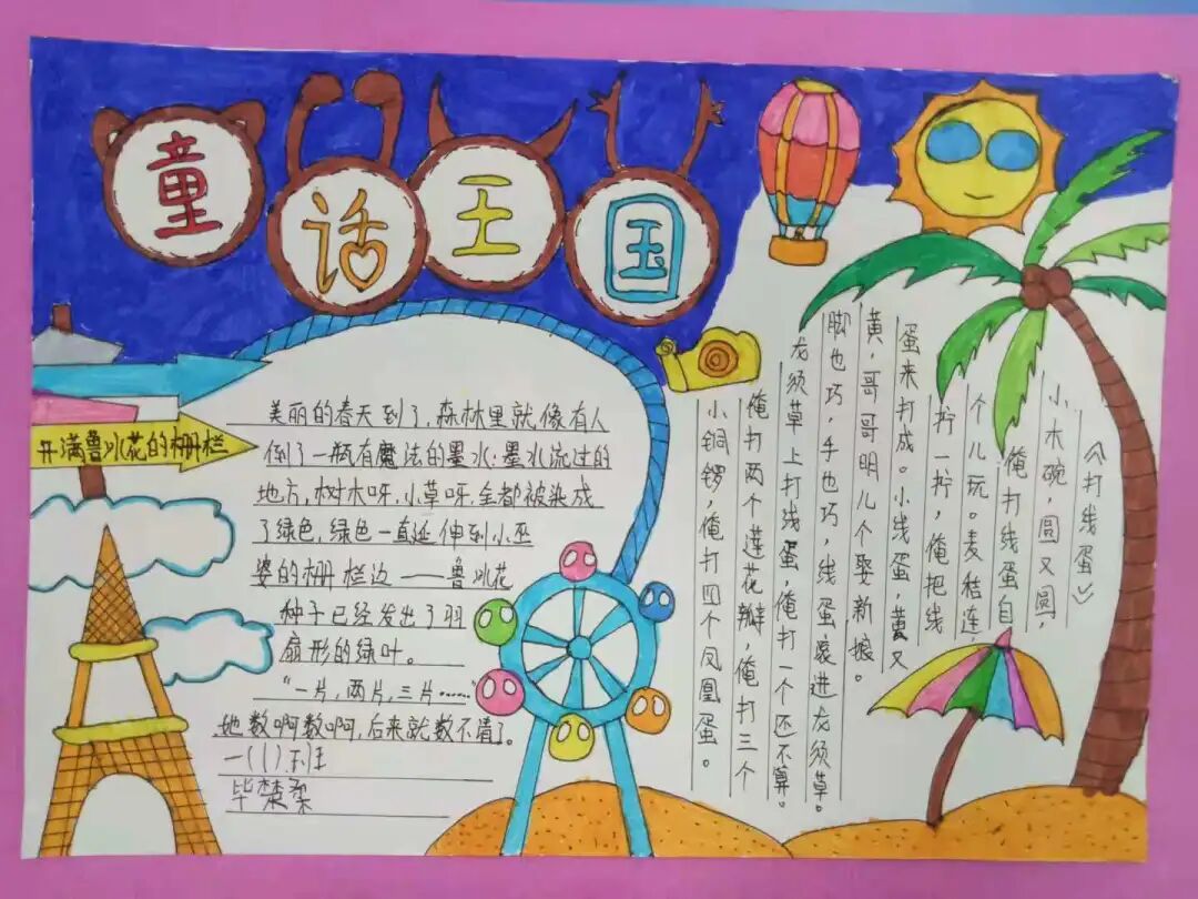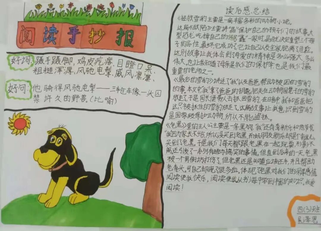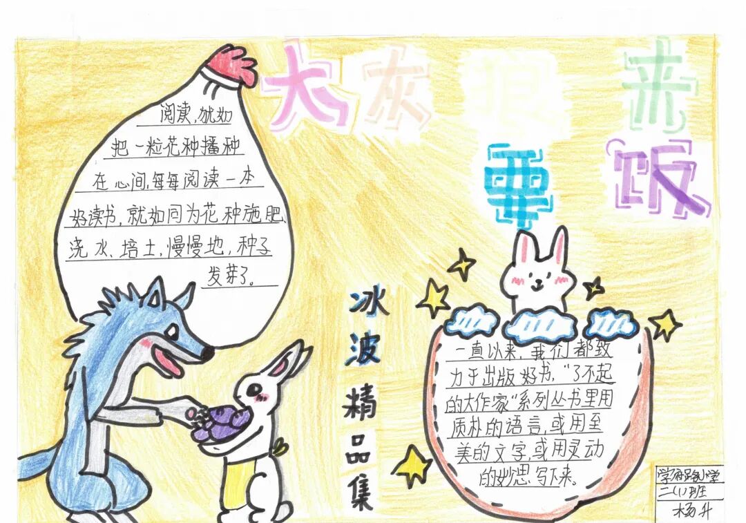 小小的一份手抄报,同学们的赤诚之心却溢出了纸面。低年级学生通过手抄报的形式,将自己阅读时的发现与思考记录下来。