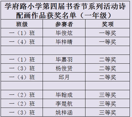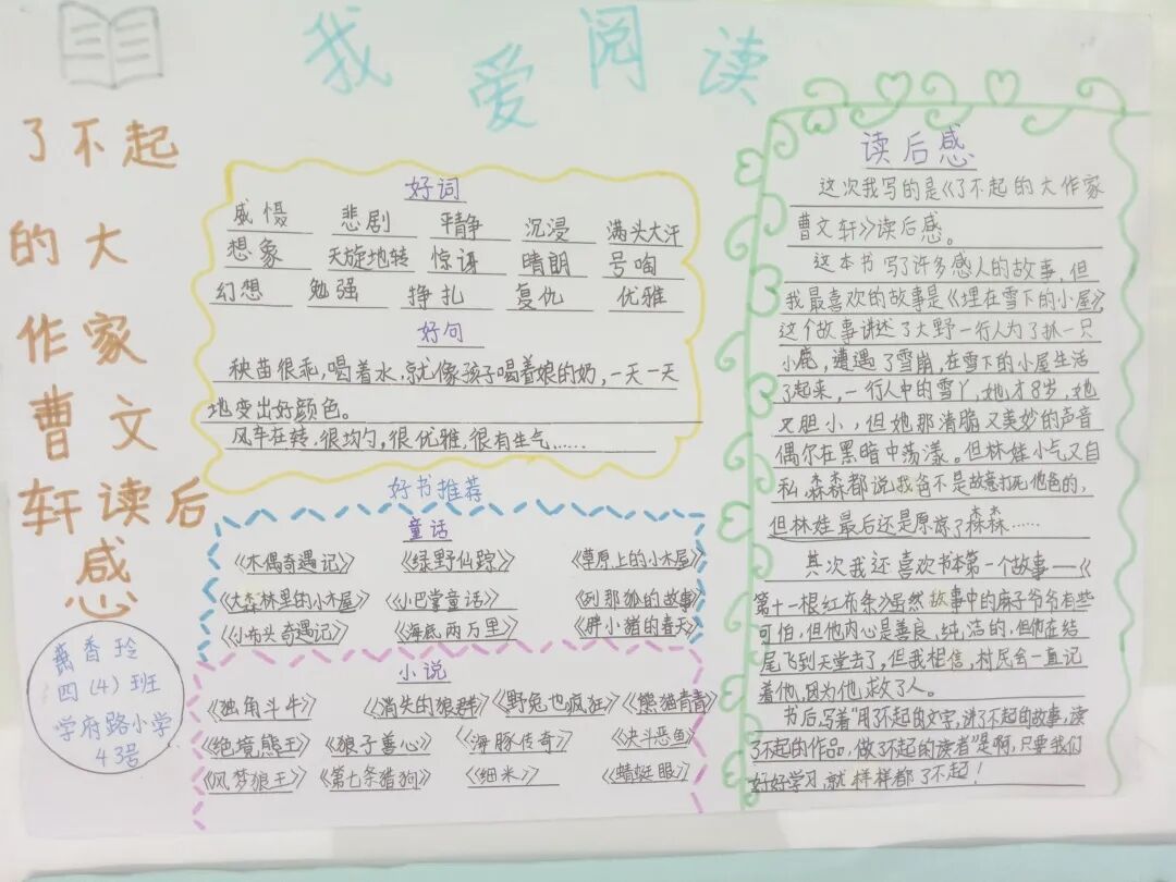一年级阅读记录卡手抄报获奖名单: