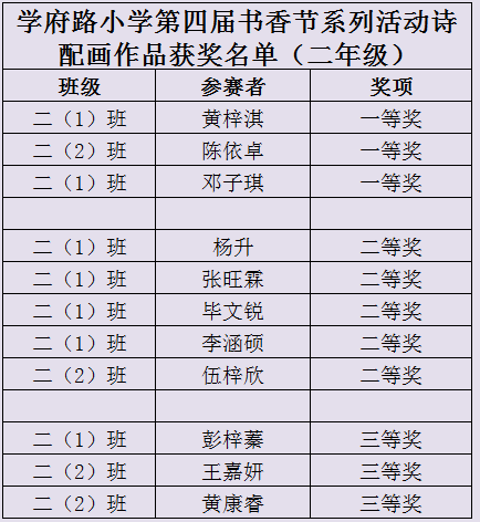 本次“共读共成长”活动中,手抄报和读书心得作品由我校语文老师评选出奖项,诗配画作品由美术老师评选出奖项。
