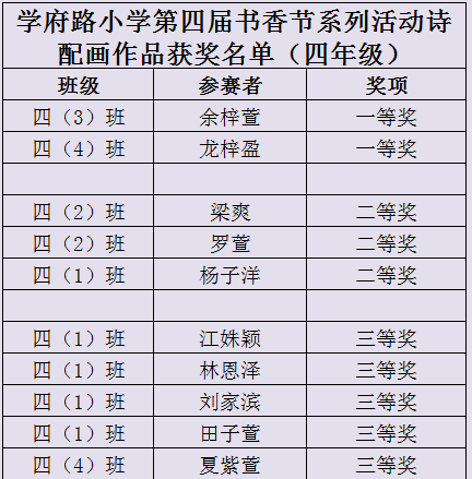 四年级阅读记录卡读书心得获奖名单