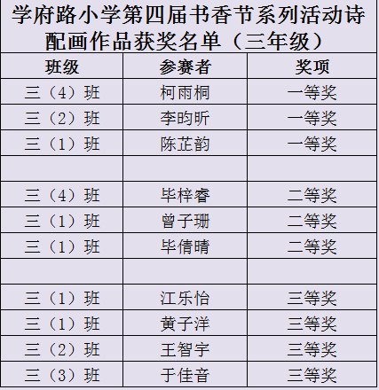 三年级阅读记录卡读书心得获奖名单