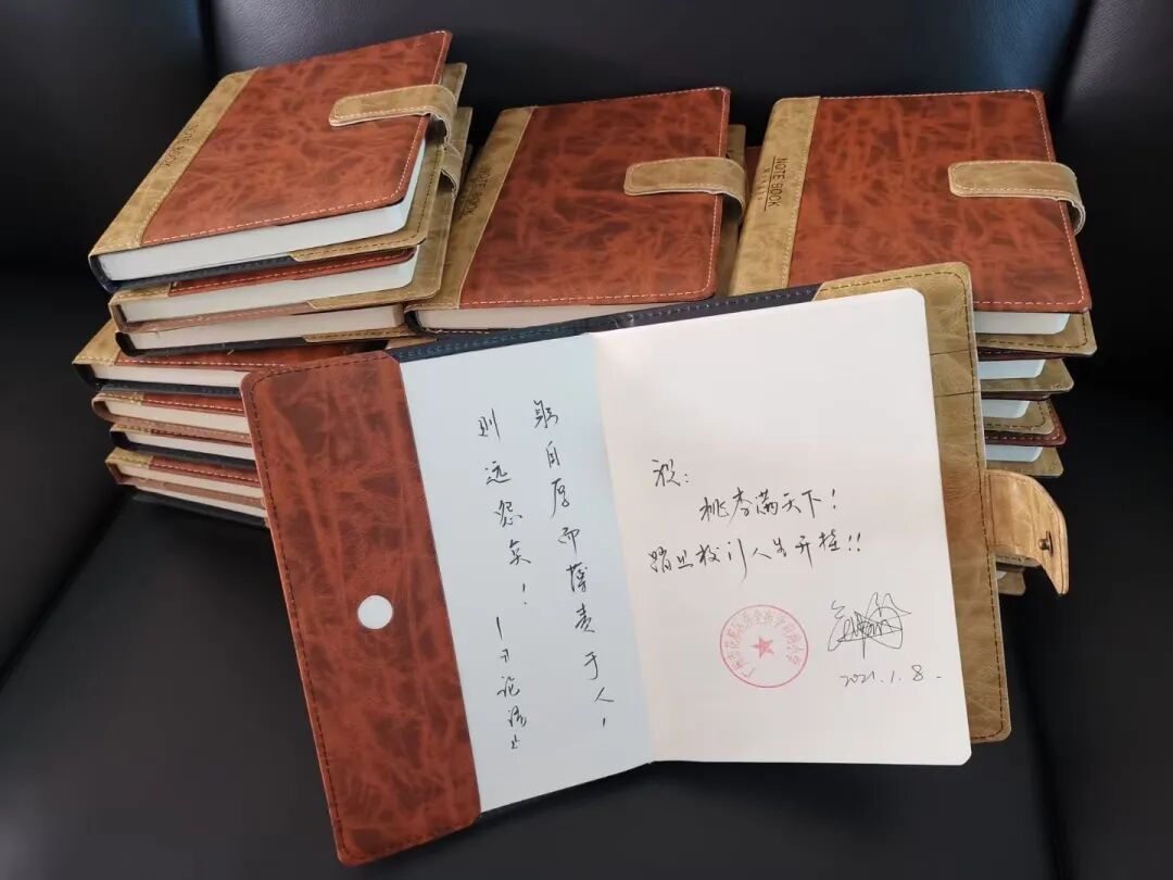 钟校送给每位实习教师一个笔记本,在扉页写上殷切寄语,希望他们带着学府路小学的祝福勇攀事业高峰!