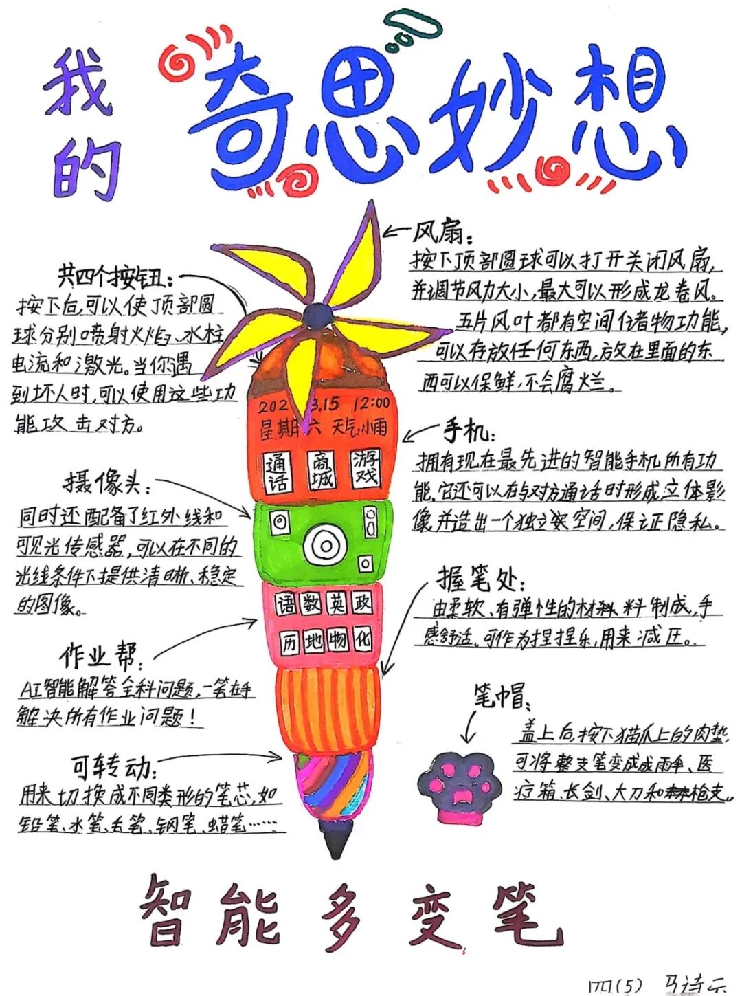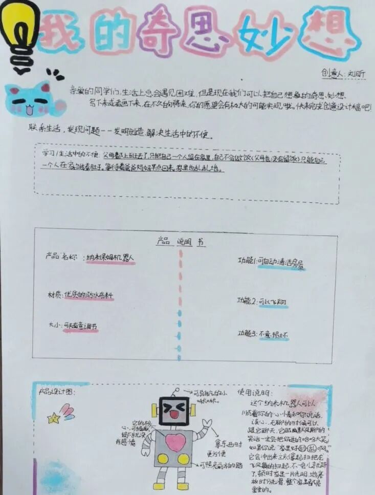 瞧,四年级的同学们以笔为舟,以想象为帆,描绘出一件件充满创意的未来物品。他们用文字勾勒细节,用语言赋予物品生命,或设计环保智能的学习助手,或构想便捷高效的生活神器。字里行间,不仅展现了同学们对未来的无限遐想,更彰显了语文的文字魅力——让创意跃然纸上,让想象触手可及。此次活动,让同学们在创作中感受语文之韵,在想象中领略文字之美。