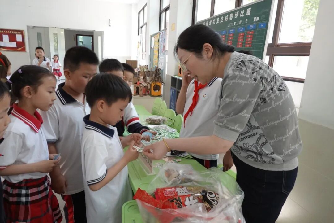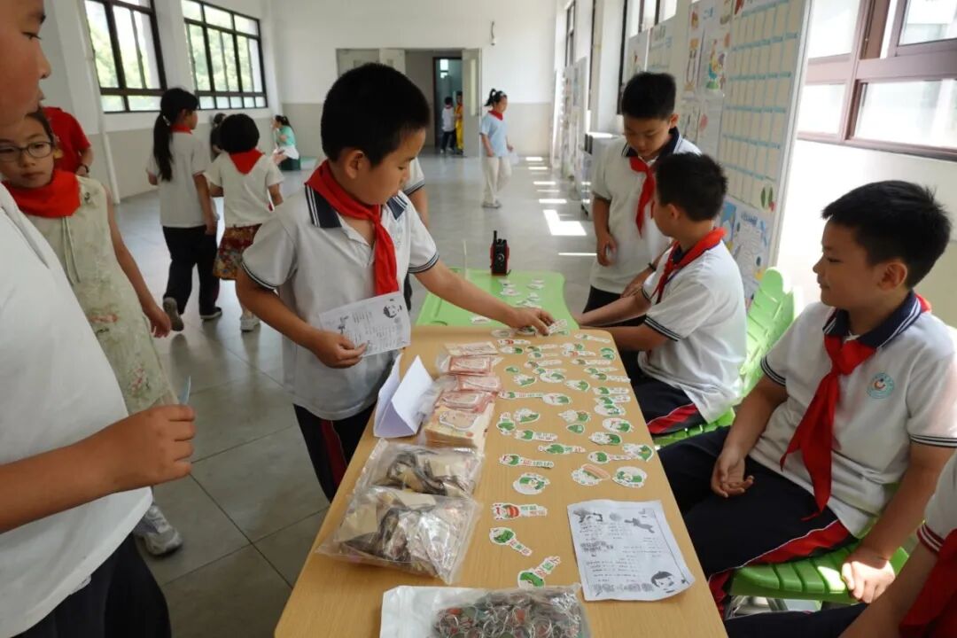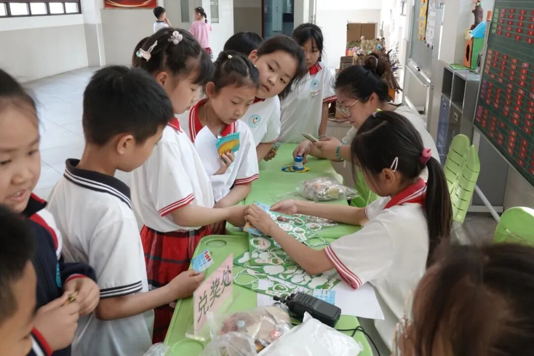 经过半天的趣味闯关,学生们带着积满印章的卡片前往学校报告厅兑换奖品。不同数量的印章可兑换相应的特色奖品。